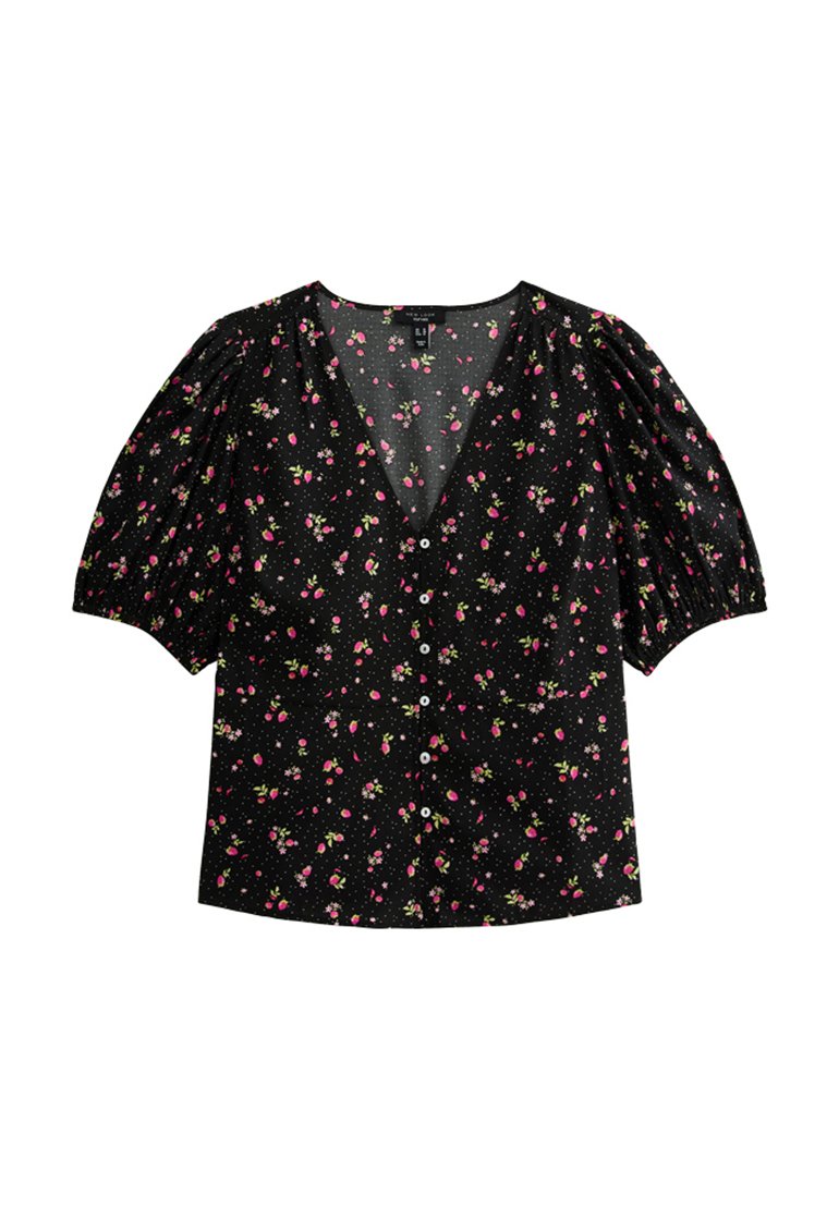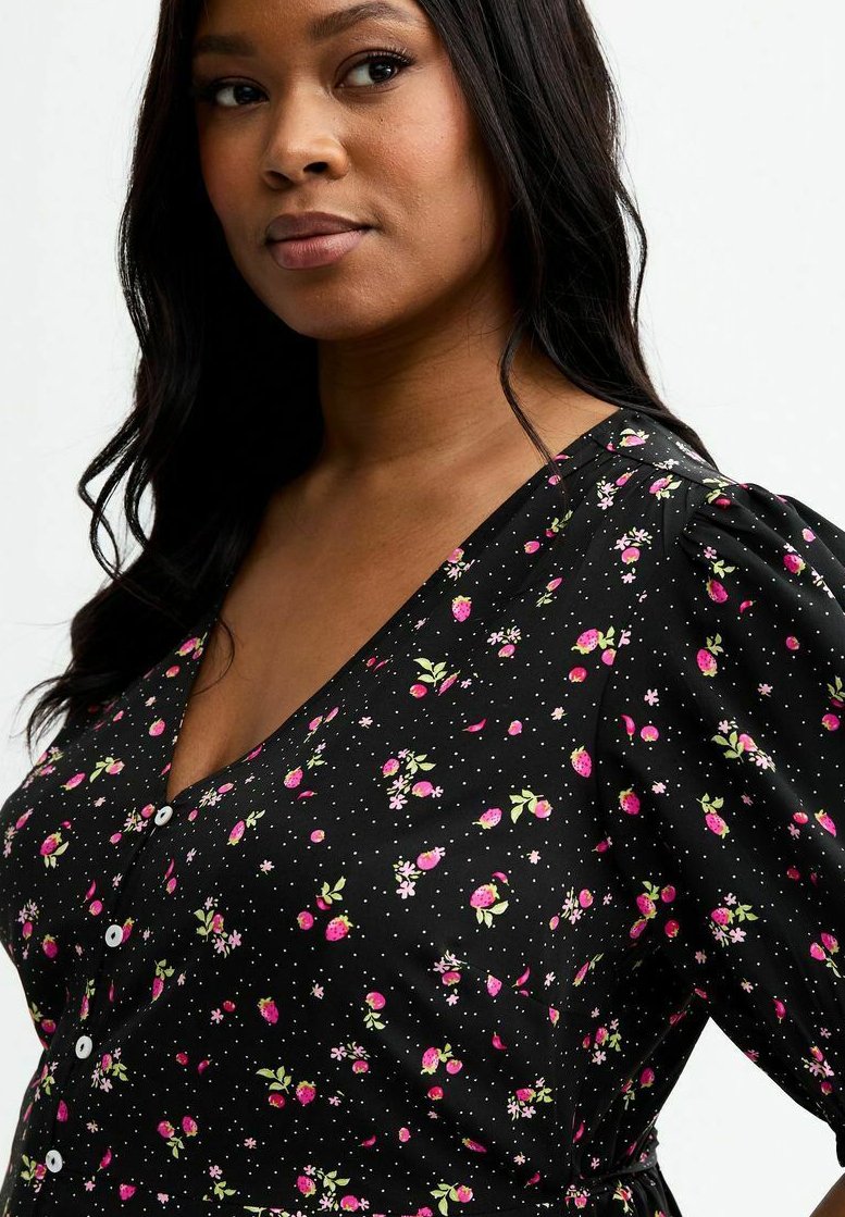 Блуза CURVES STRAWBERRY FLORAL PRINT CREPE TEA New Look Curves, черный 4 984₽