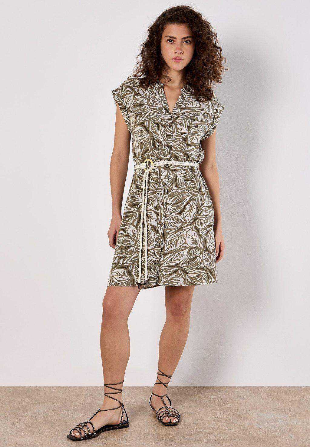 Платье-рубашка LEAF PRINT ROPE MINI Apricot, хаки