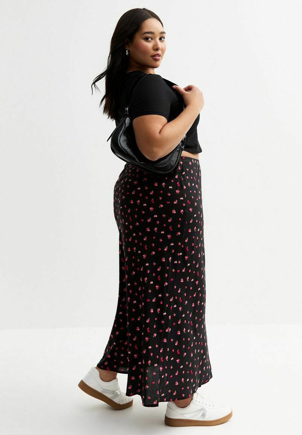 Юбка макси CURVES BERRY PRINT JERSEY MIDI New Look Curves, черный