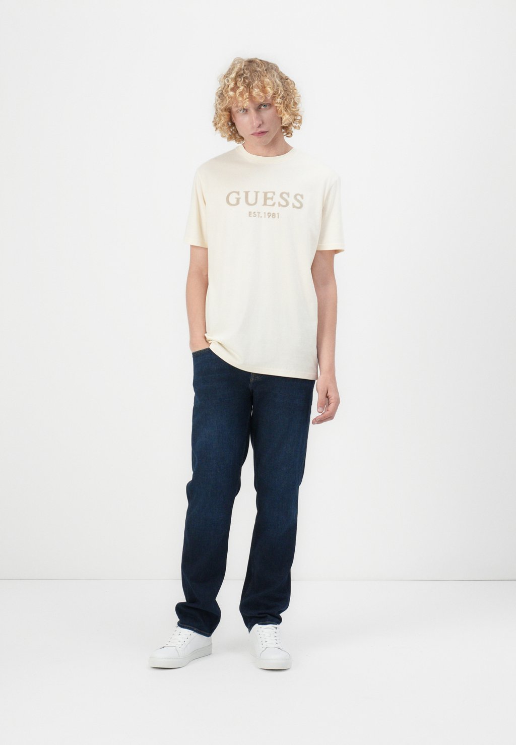 Футболка с принтом BOX LOGO TEE Guess, кремовый