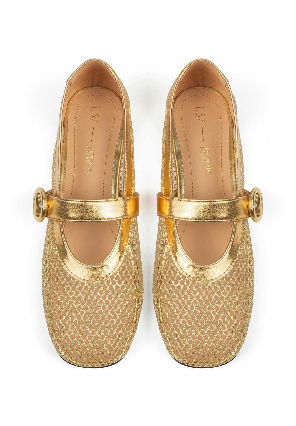 Балетки с ремешком SPEND MY DAY L37, золотой