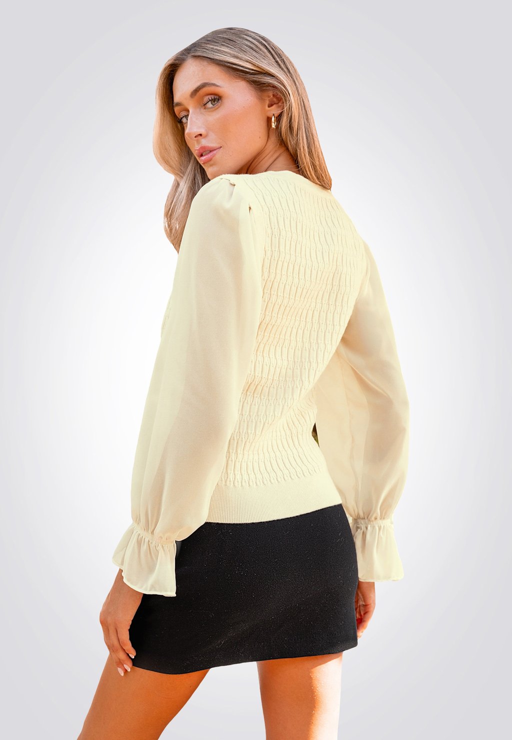 Джемпер V NECK POET SLEEVE Cupshe, кремовый