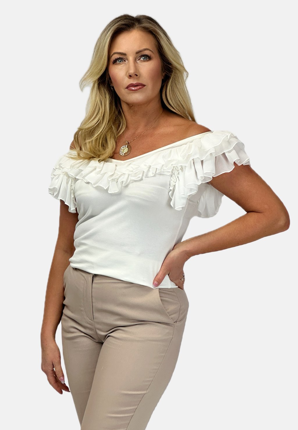 Блуза FRILLED NECK REGINA FASHION, белый