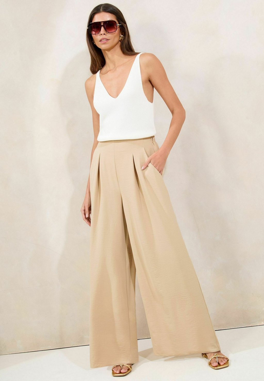 Брюки HIGH WAISTED WIDE LEG Lipsy, бежевый