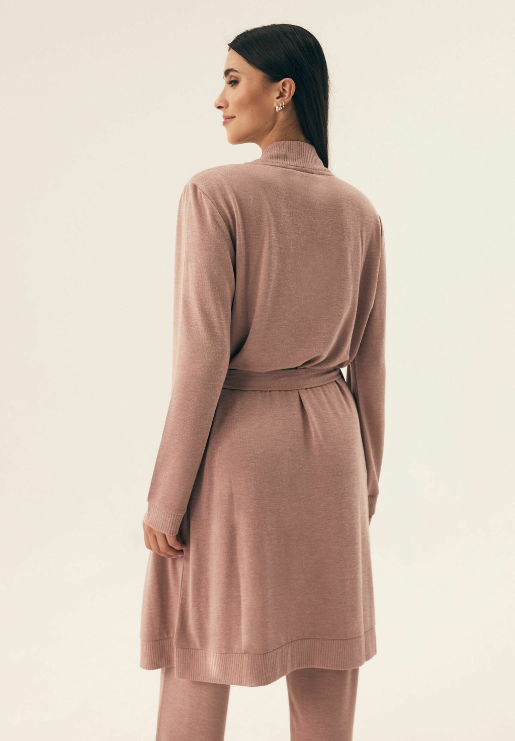 Детали: пояс, покрой кимоно, карманы, воротник-шалка, длинная