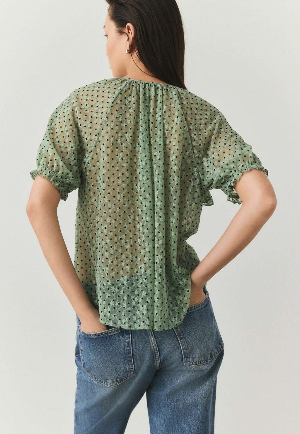 Блуза REGULAR FIT - SHORT SLEEVE RUFFLE Next, зеленый