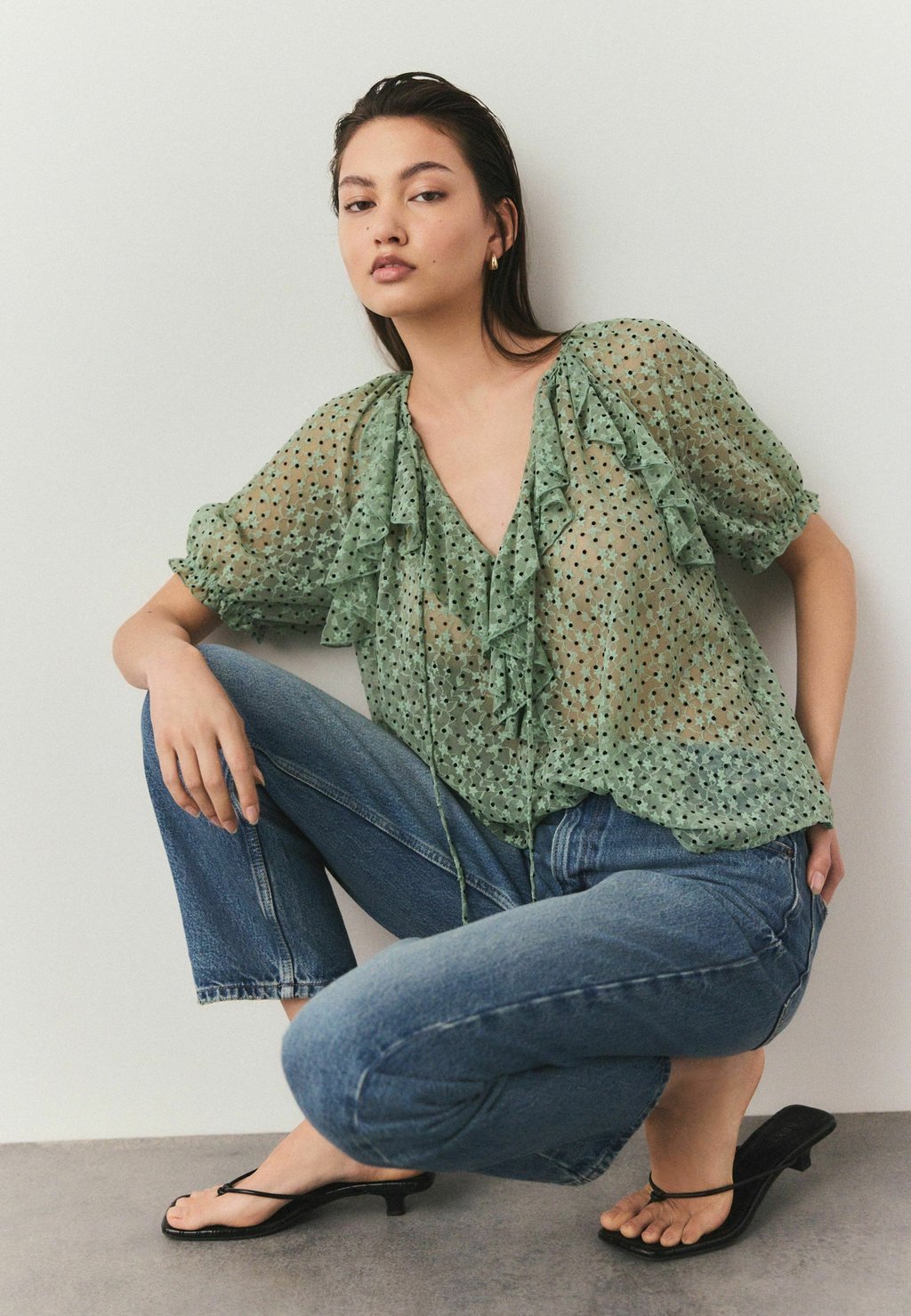 Блуза REGULAR FIT - SHORT SLEEVE RUFFLE Next, зеленый 5 093₽