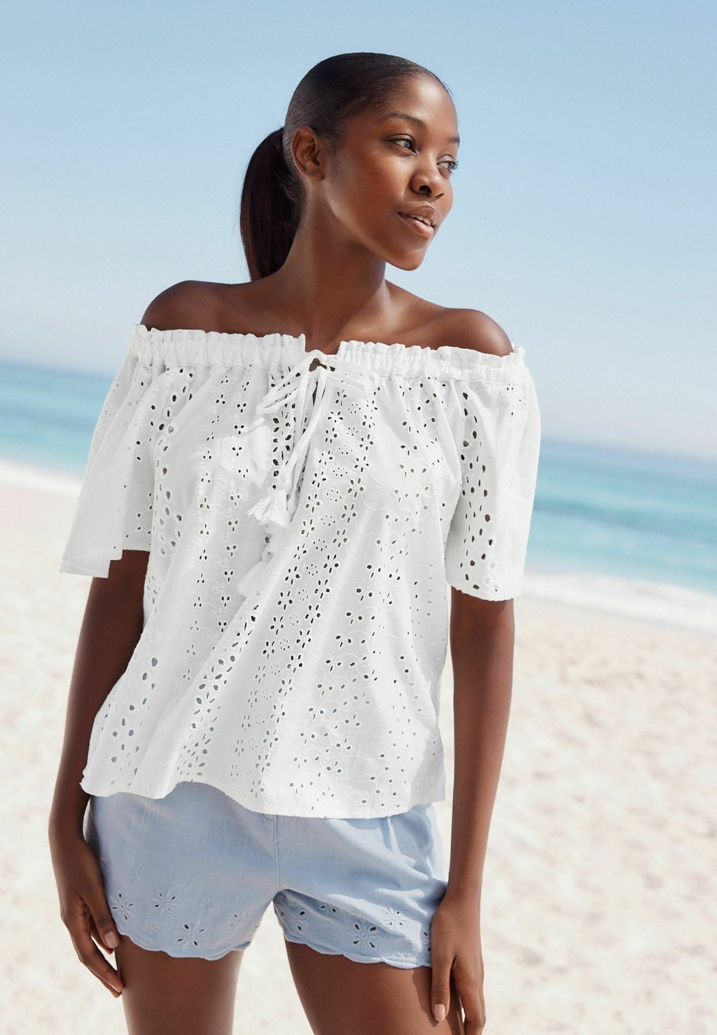 Блуза SHORT SLEEVE NECK BARDOT Next, белый