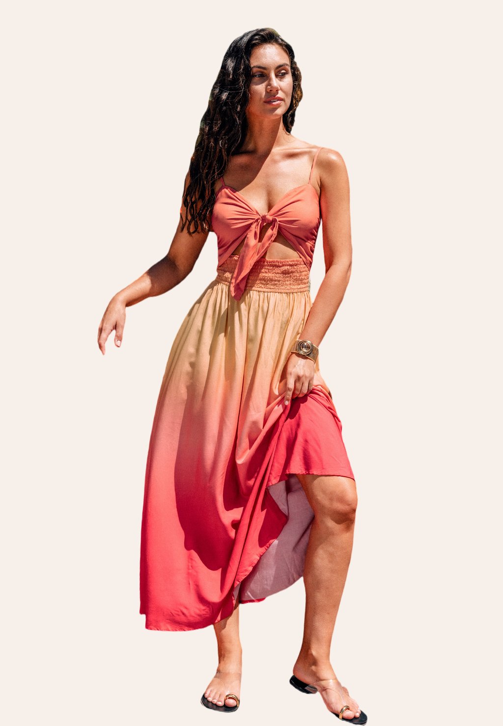 Длинное платье SUNSET FRONT TIE Cupshe, неоново-розовый
