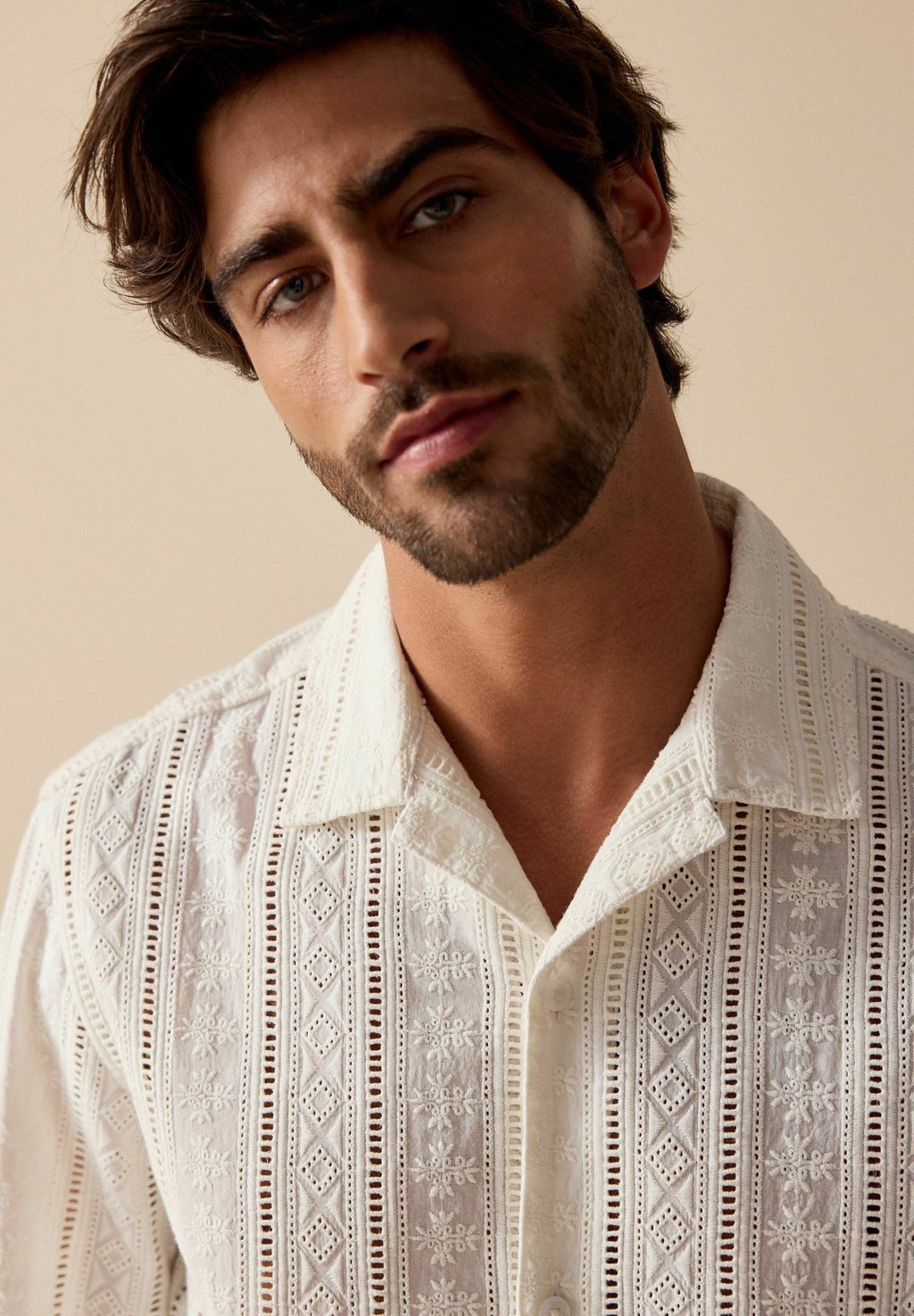 Рубашка REGULAR FIT-TEXTURED BRODERIE SHORT SLEEVE Next, бежевый 6 307₽