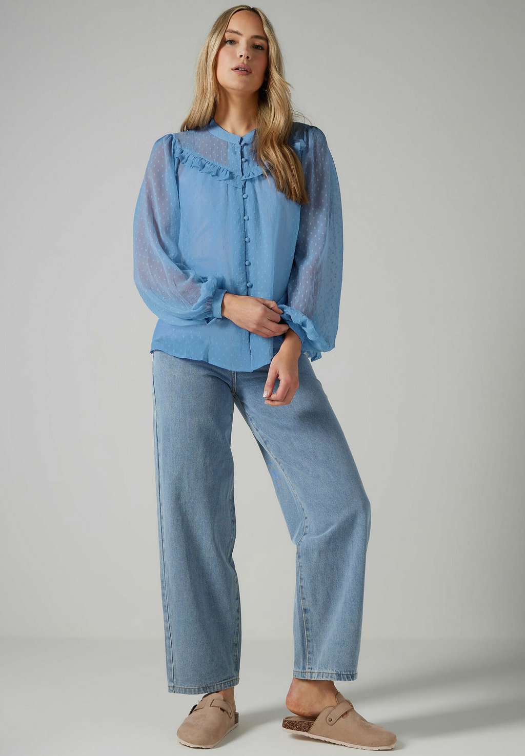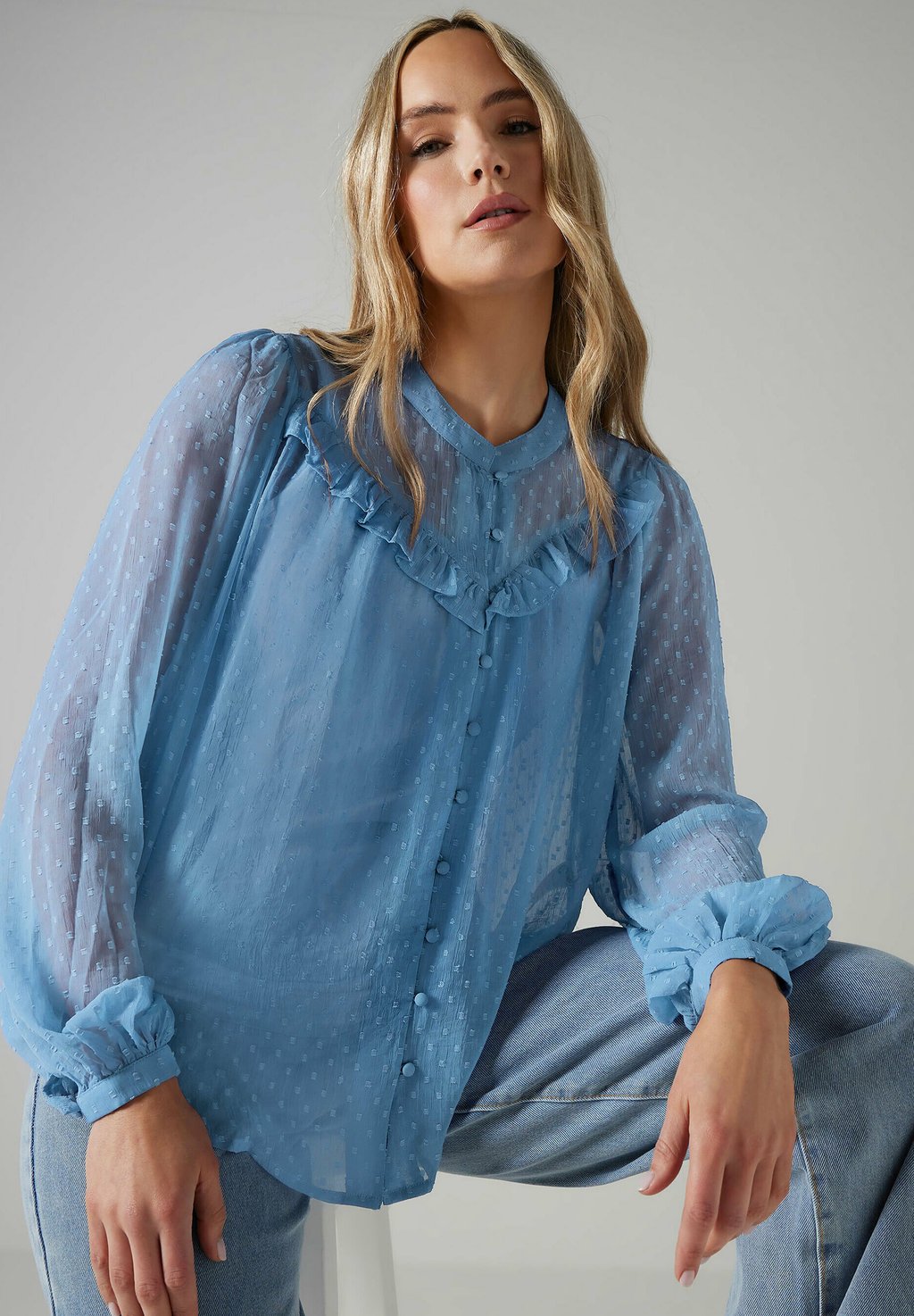 Блузка на пуговицах SHEER DOBBY FRILL Long Tall Sally, синий