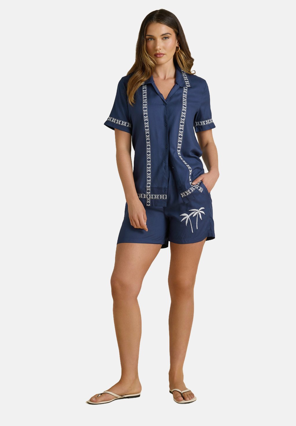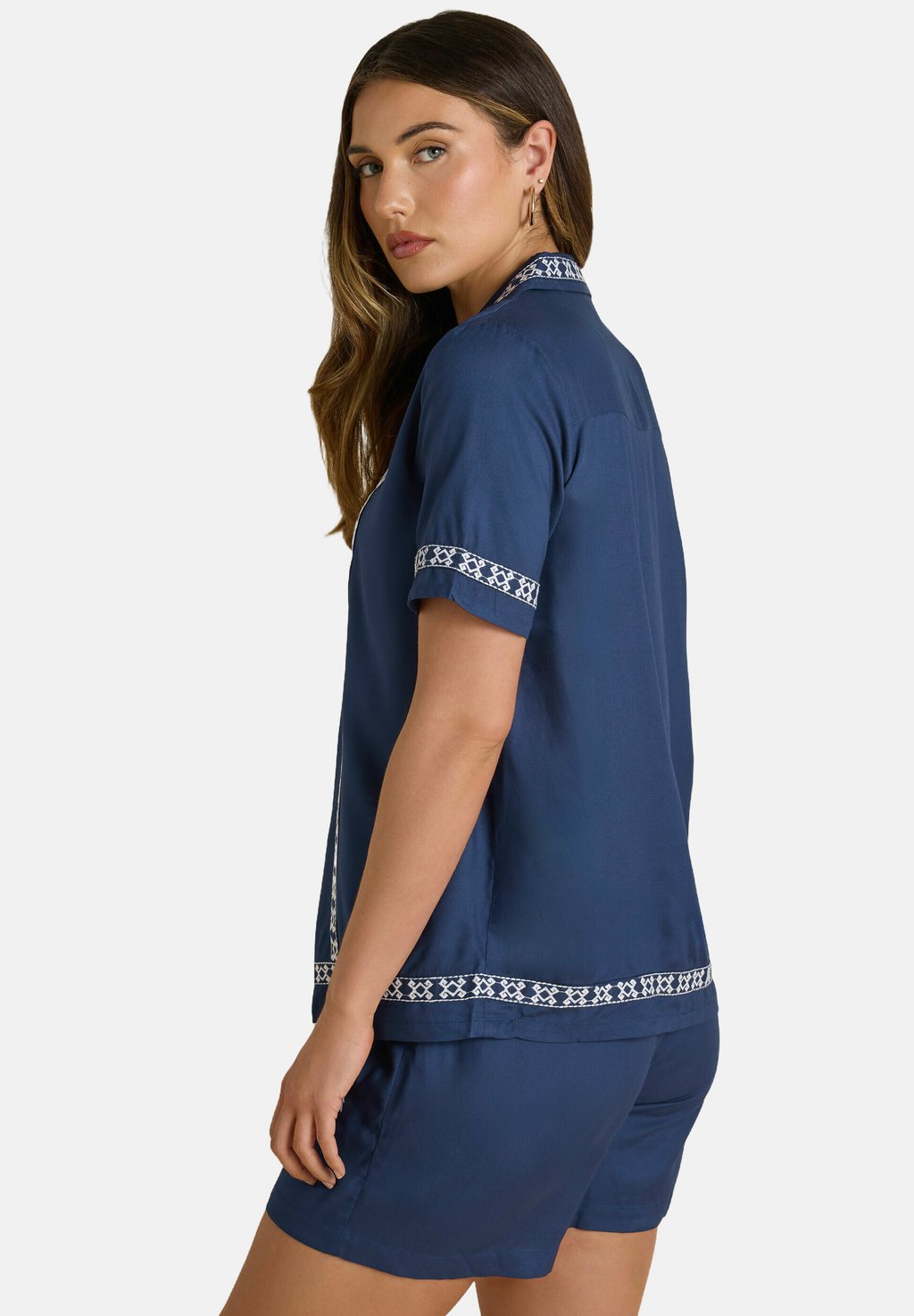 Блузка на пуговицах AZTEC EMBROIDERED Long Tall Sally, темно-синий