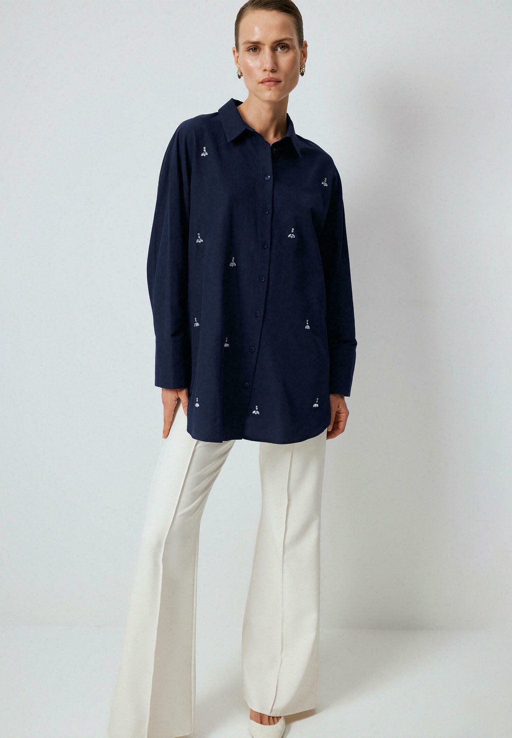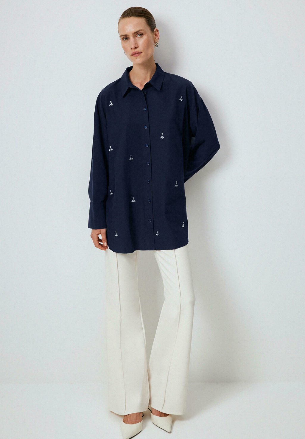 Блузка на пуговицах STONE EMBROIDERED Touché Privé, темно-синий