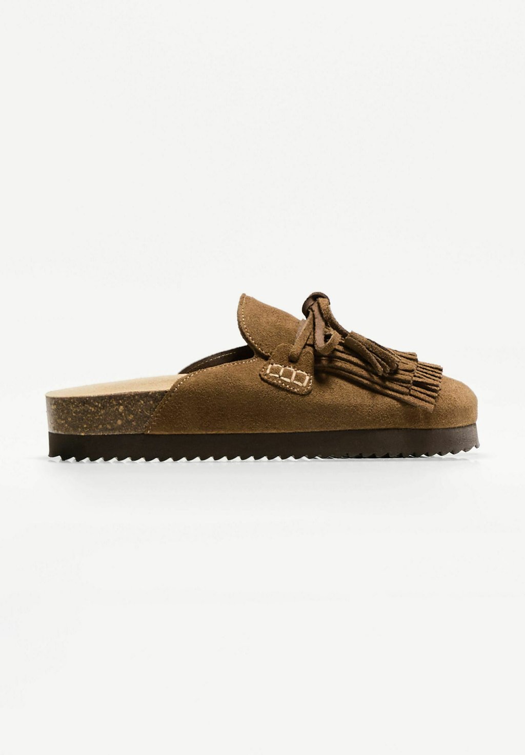 Мюли FLAT WITH FRINGE DETAILS Bershka, коричневый