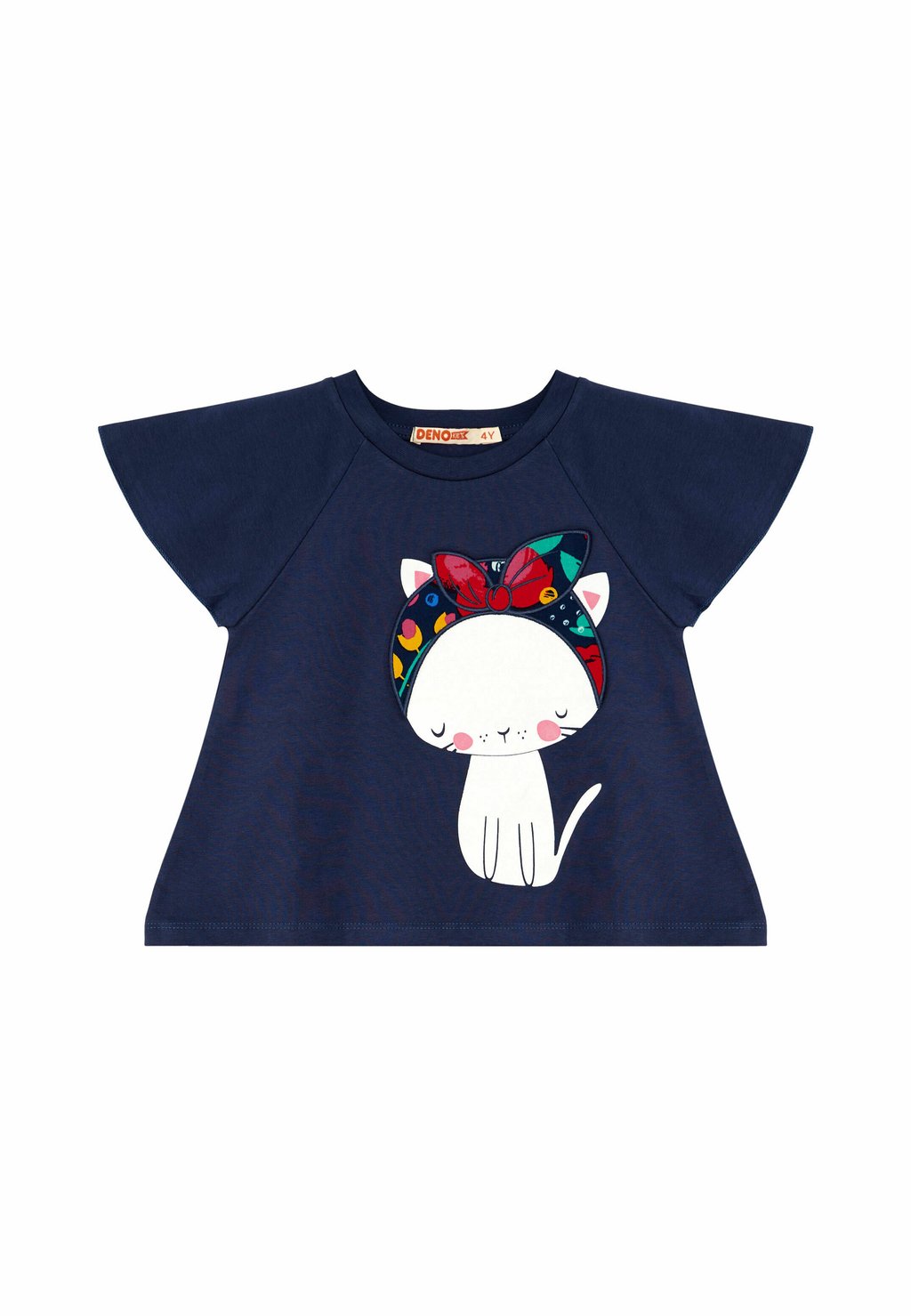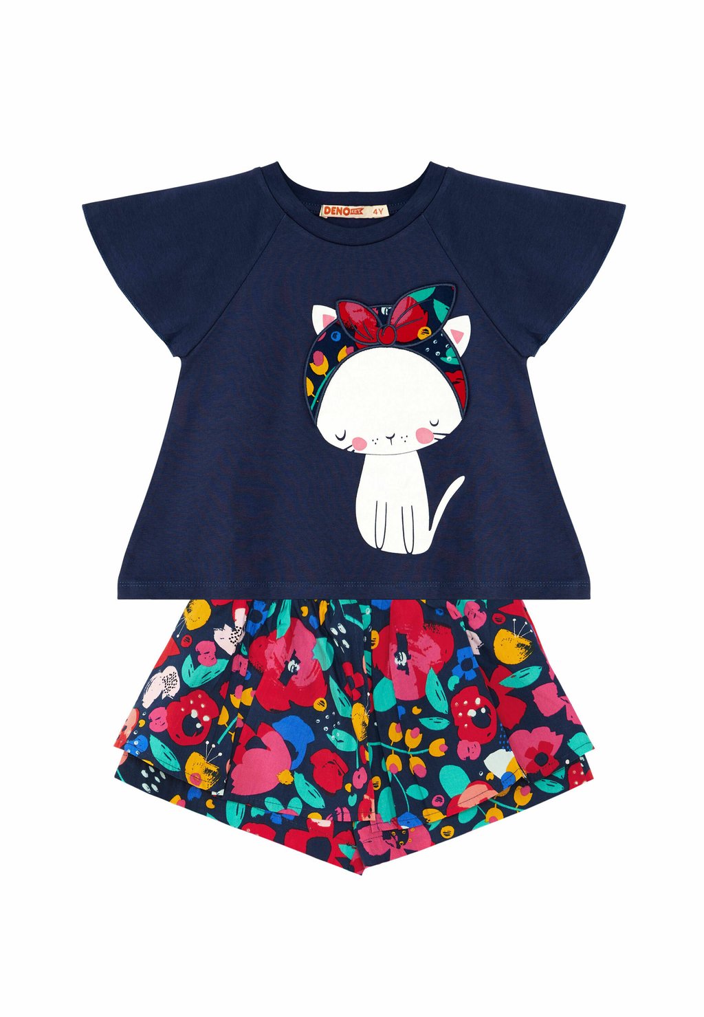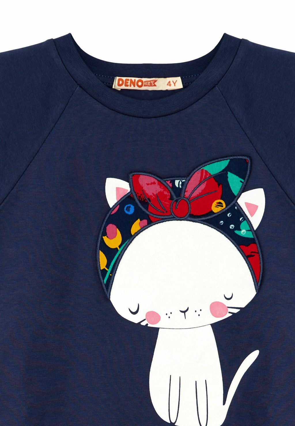Футболка с принтом CAT FLOWERS SET Denokids, темно-синий