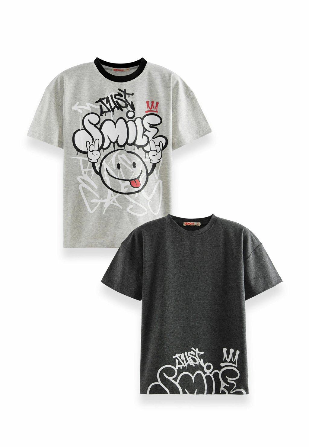 Футболка с принтом 2ER-PACK JUST SMILE Denokids, серый