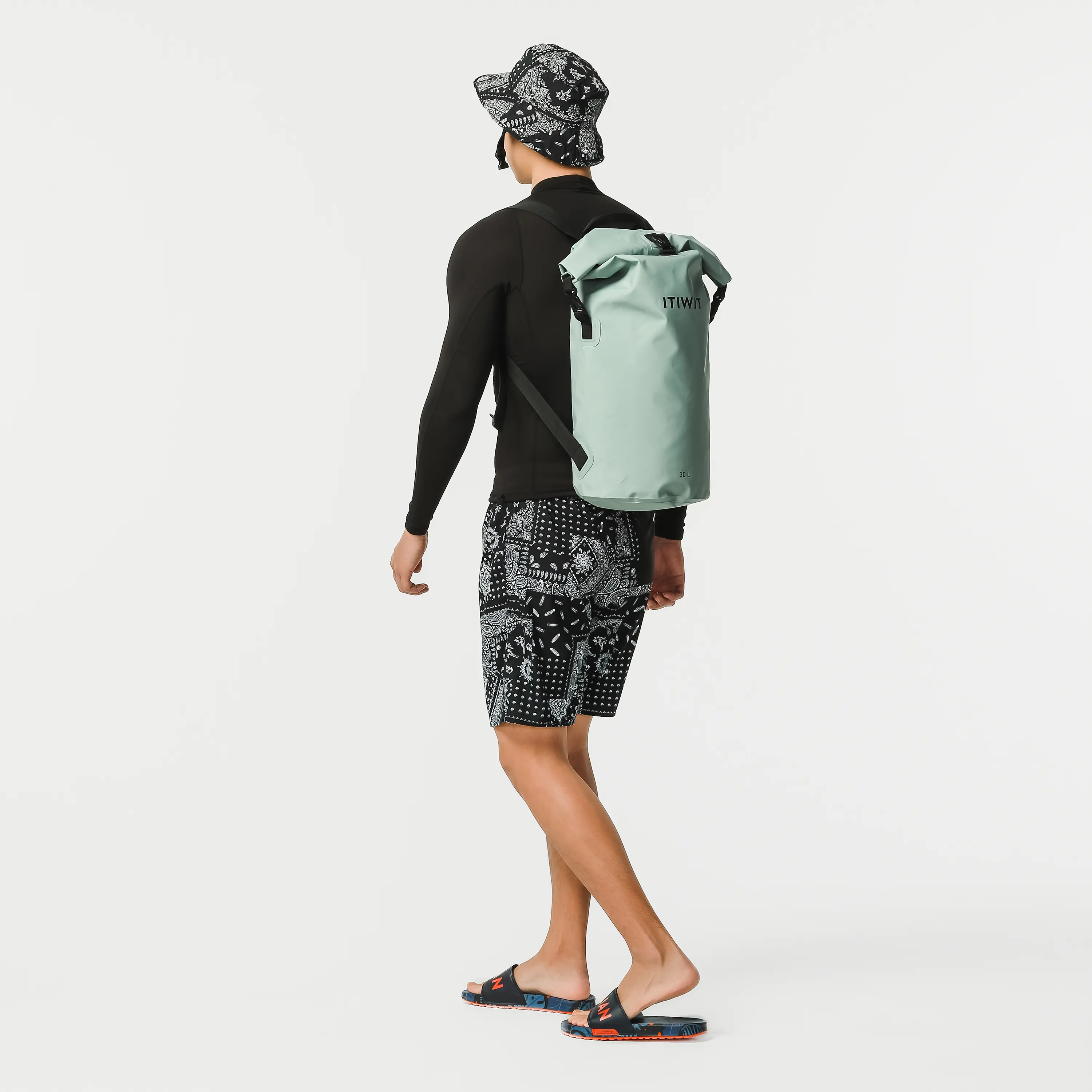 Этот водонепроницаемый рюкзак объемом 30 л подойдет для защиты ваших вещей во время занятий водными видами спорта. Электронные устройства нуждаются в двойной защите. Не замачивайте горловину рюкзака в воде. Не рекомендуется использовать во время походов. Этот водонепроницаемый рюкзак объемом 30 л защищен от брызг. Идеально подходит для каякинга, гребли стоя или коротких парусных прогулок. Регулируемые плечевые ремни, легко регулируются.