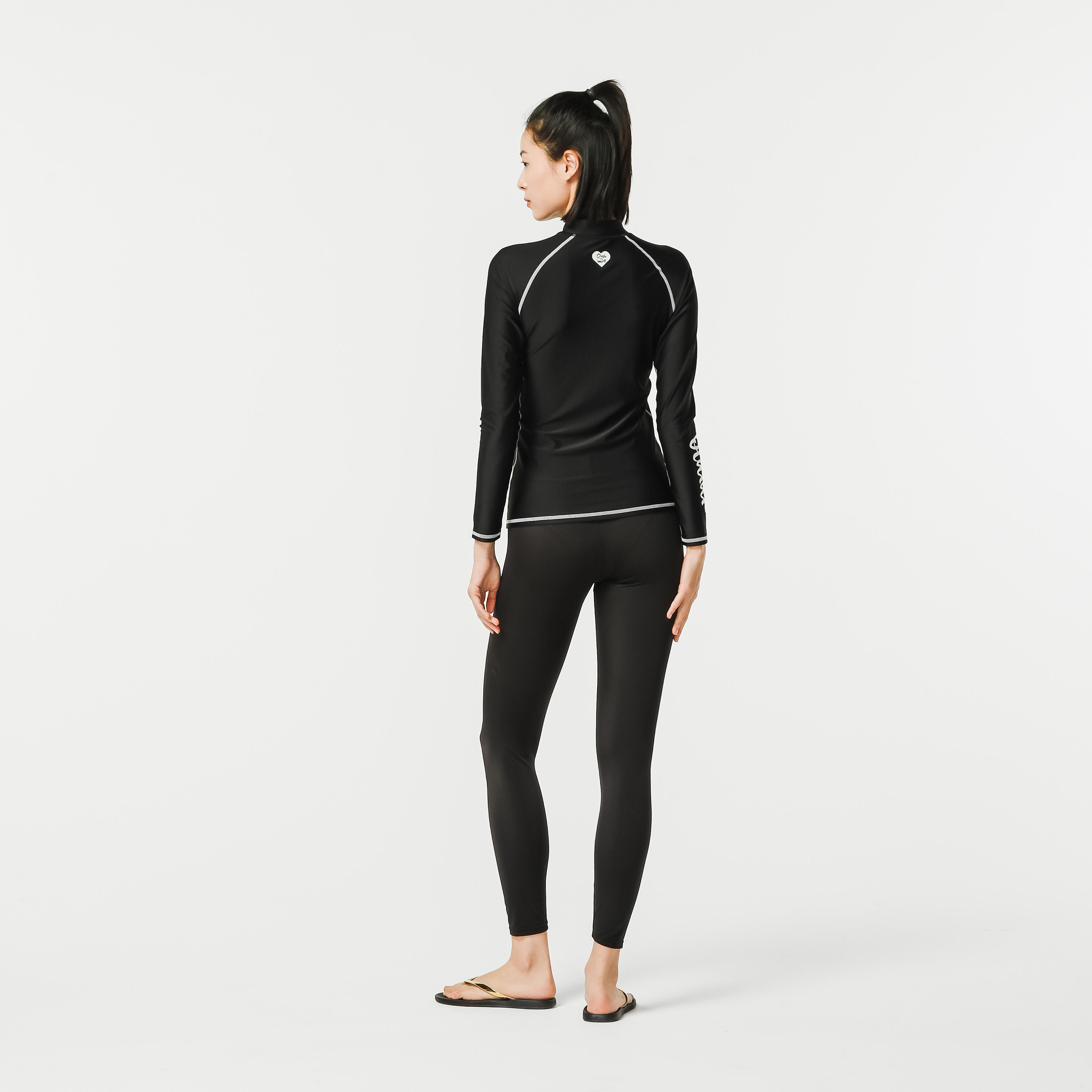 Эта солнцезащитная футболка с длинными рукавами также обеспечивает защиту от солнца в воде, уменьшая раздражение при прикосновении к доске для серфинга. Приталенный крой и шнурок обеспечивают устойчивость в воде.