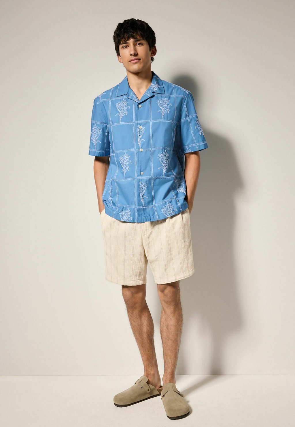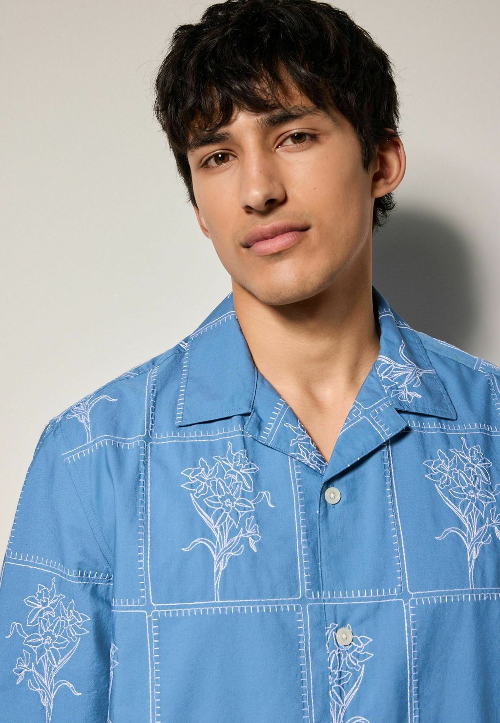 Рубашка REGULAR FIT - FLORAL EMBROIDERED SHORT SLEEVE Next, синий