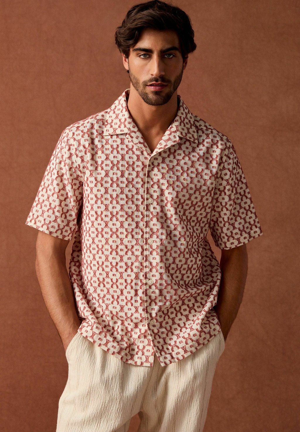 Рубашка REGULAR FIT - TRELLIS TEXTURED SHORT SLEEVE Next, красный