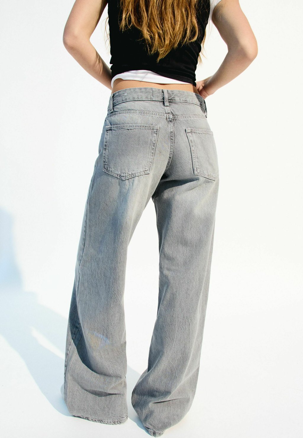 Джинсы свободного кроя WIDE Bershka, серый 6 726₽