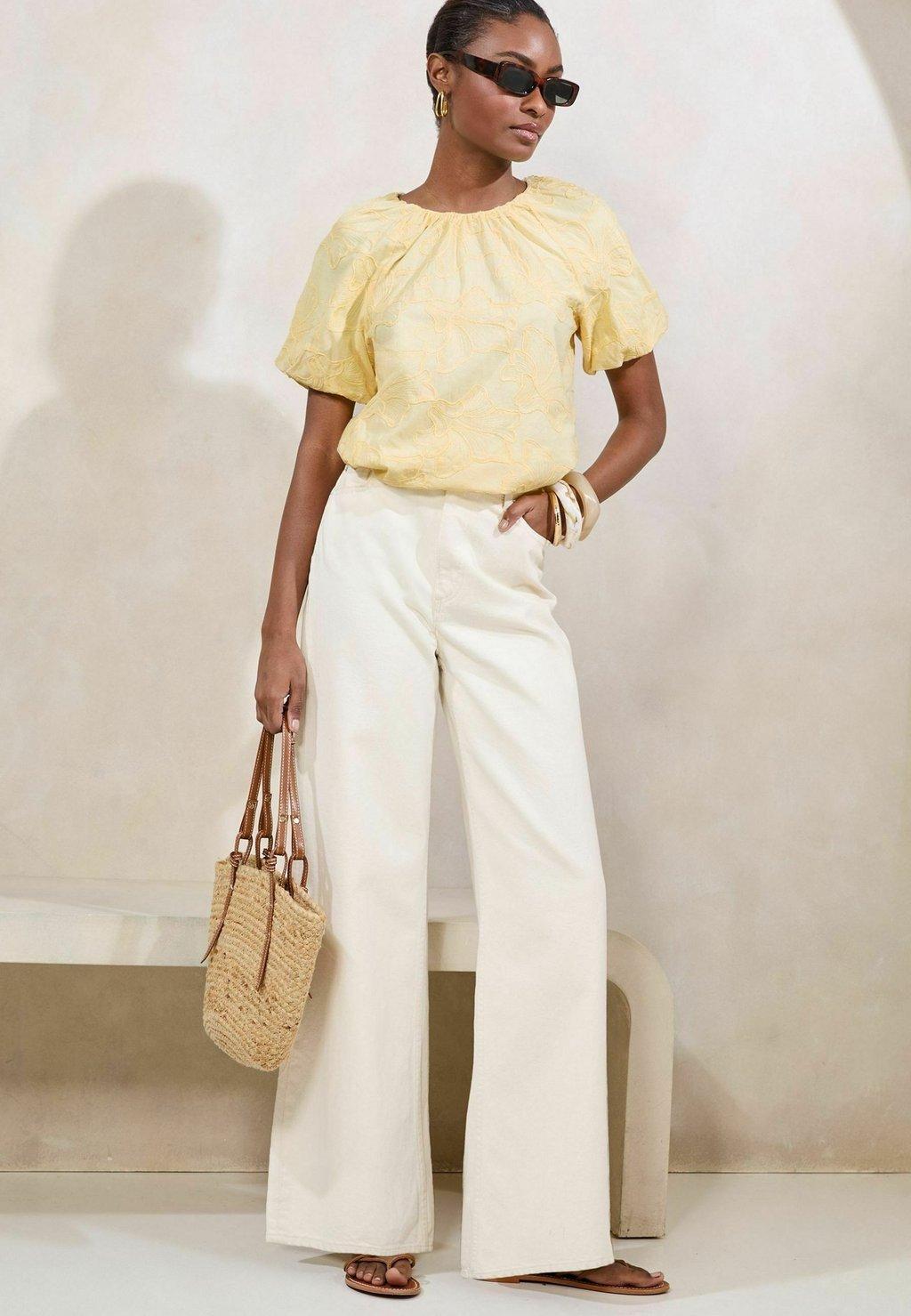 Блуза REGULAR FIT-BUBBLE PUFF SLEEVE EMBROIDERED Lipsy, желтый