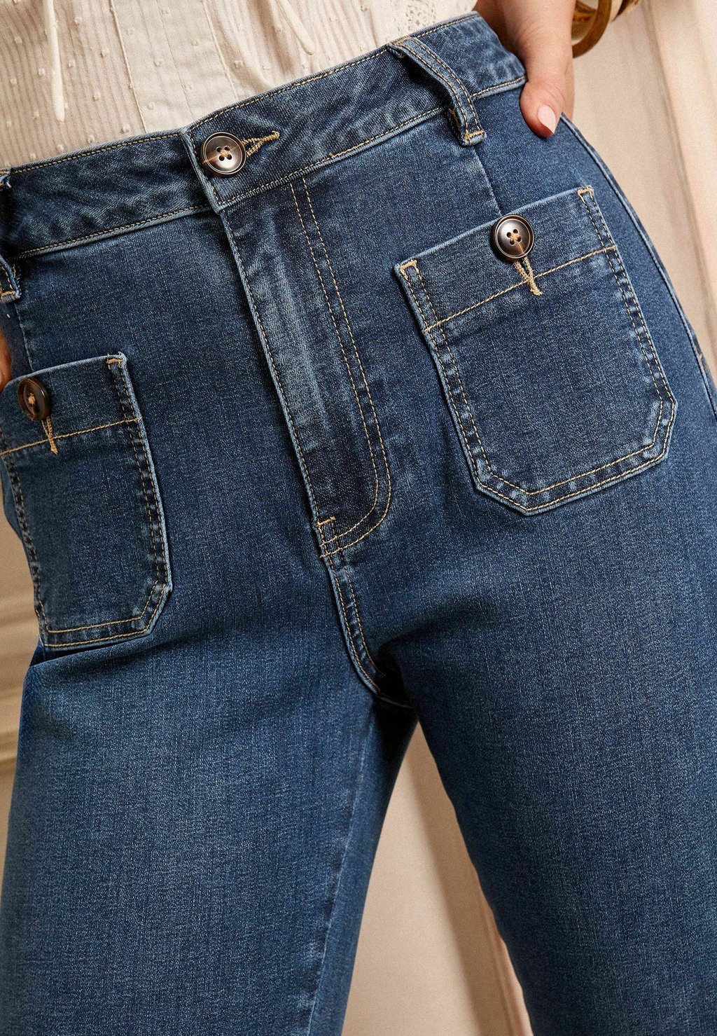Джинсы прямого кроя CROP WITH PATCH POCKET . Love & Roses, синий