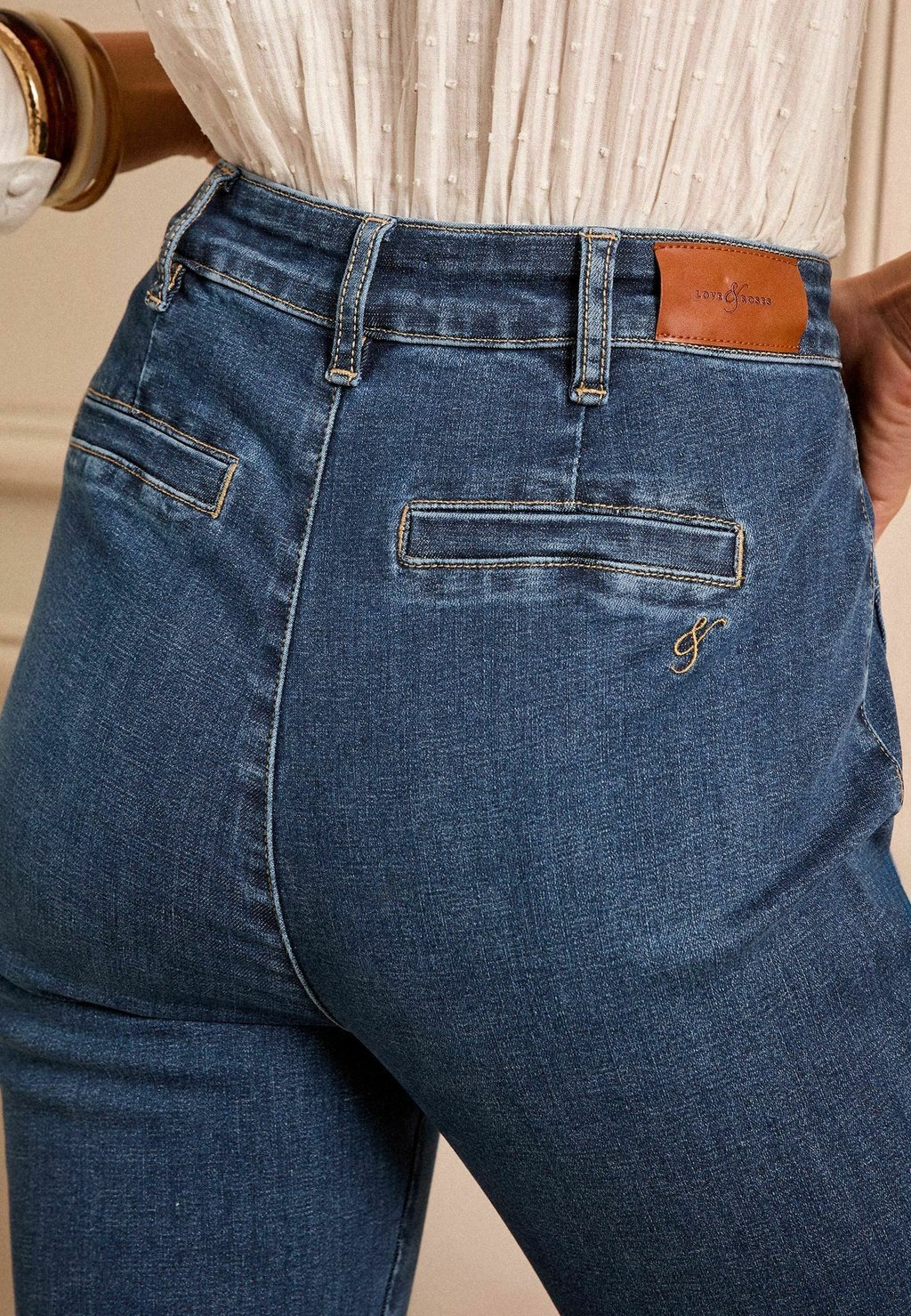 Джинсы прямого кроя CROP WITH PATCH POCKET . Love & Roses, синий 7 299₽