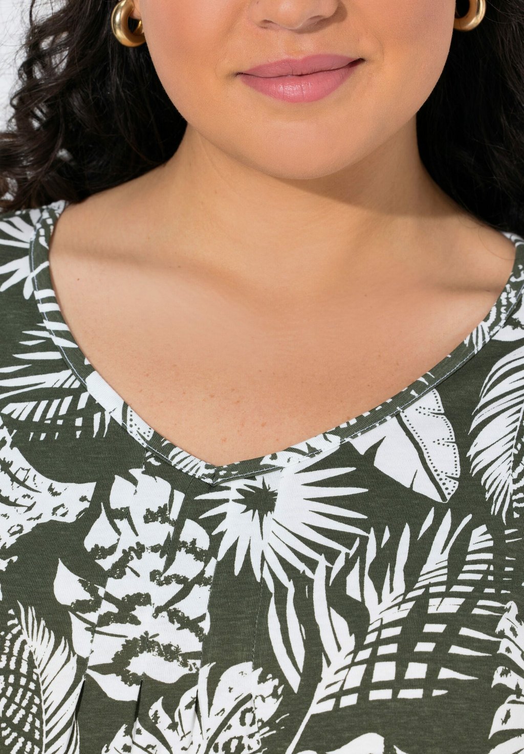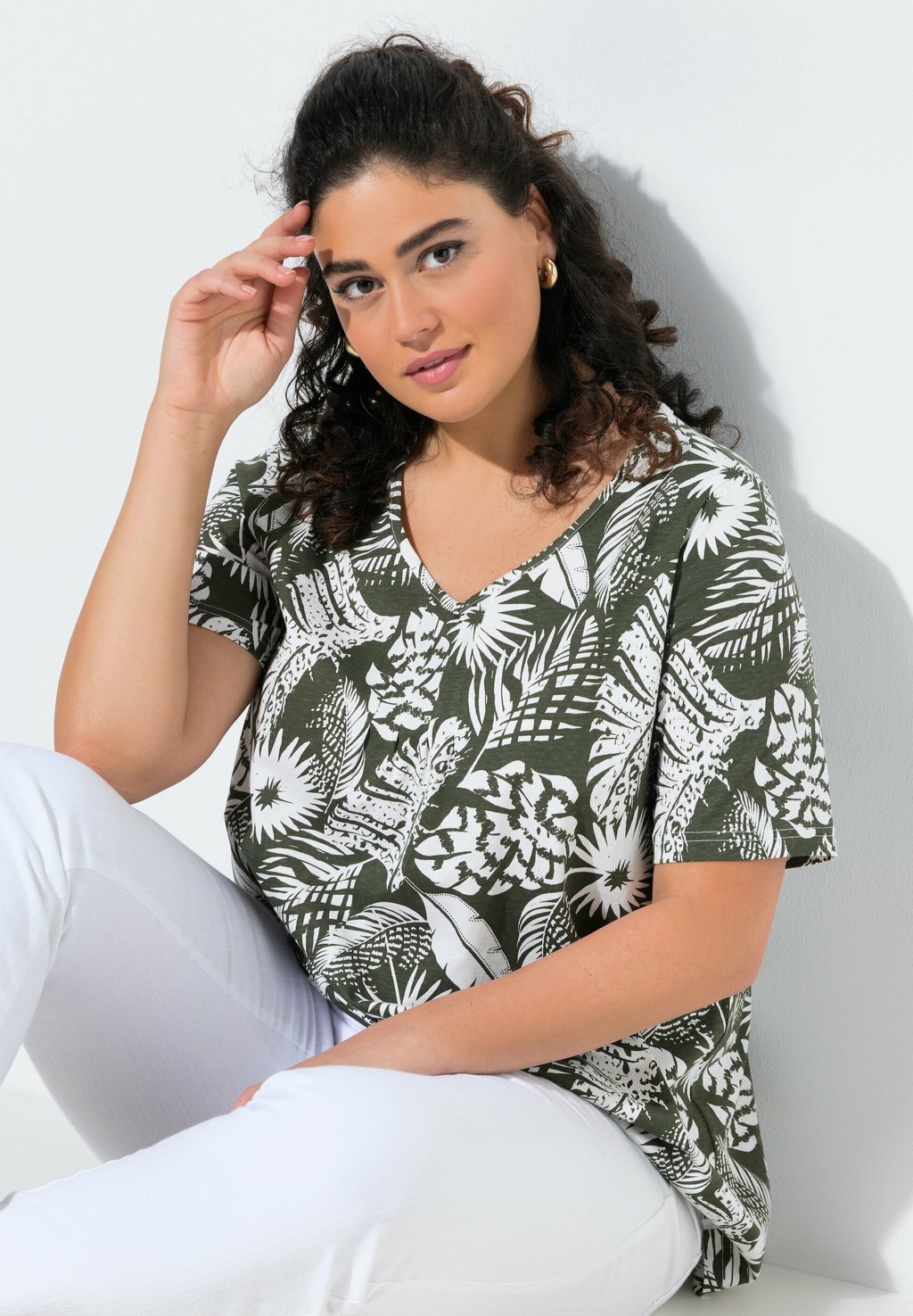 Футболка с принтом SHORT SLEEVE V-NECK Ulla Popken, оливковый