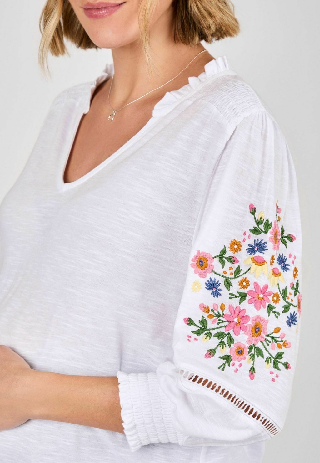 Топ с длинными рукавами MATERNITY FIT - EMBROIDERED JoJo Maman Bébé, белый