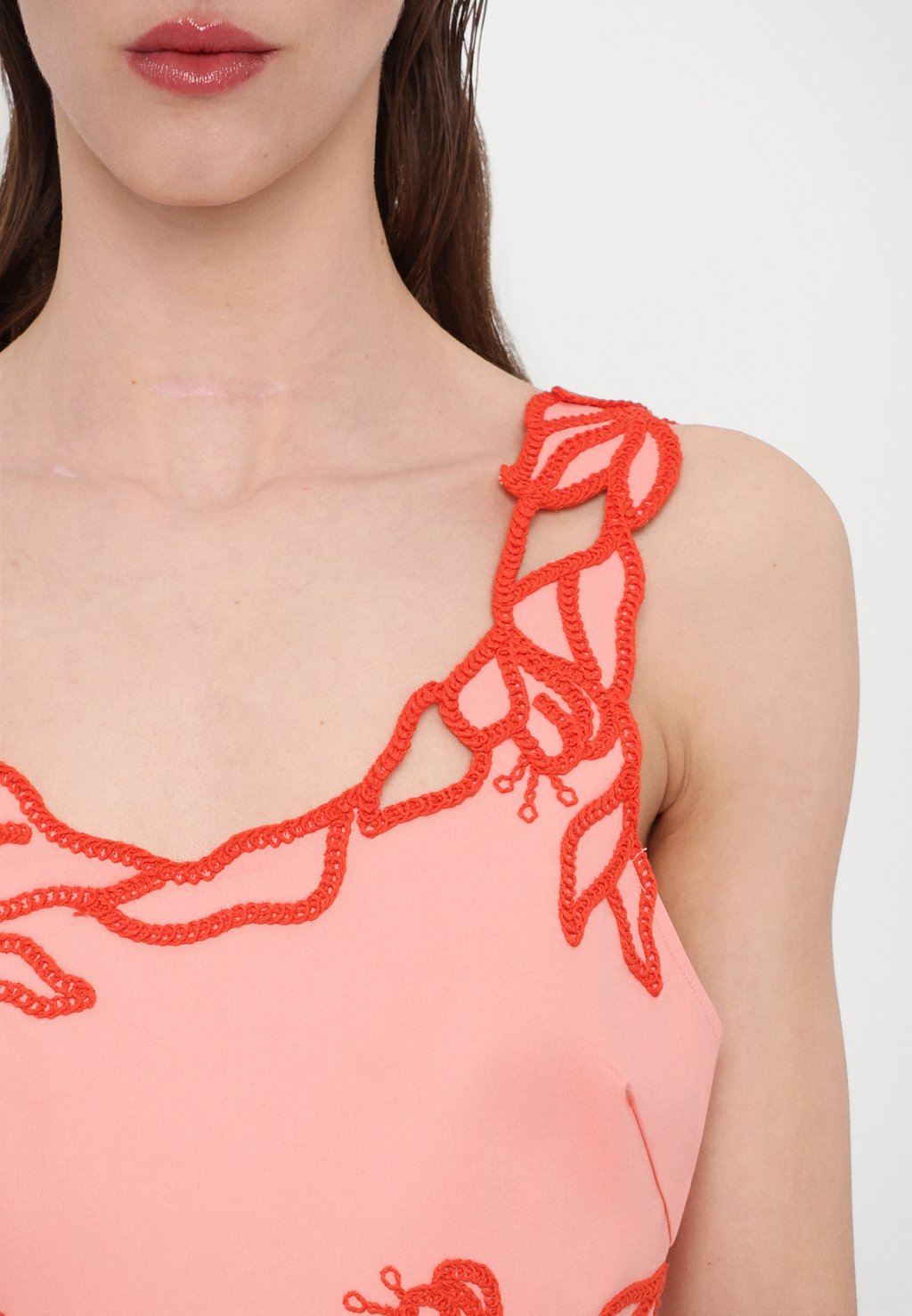 Детали: отделка крючком, вышивка, вытачки на груди.