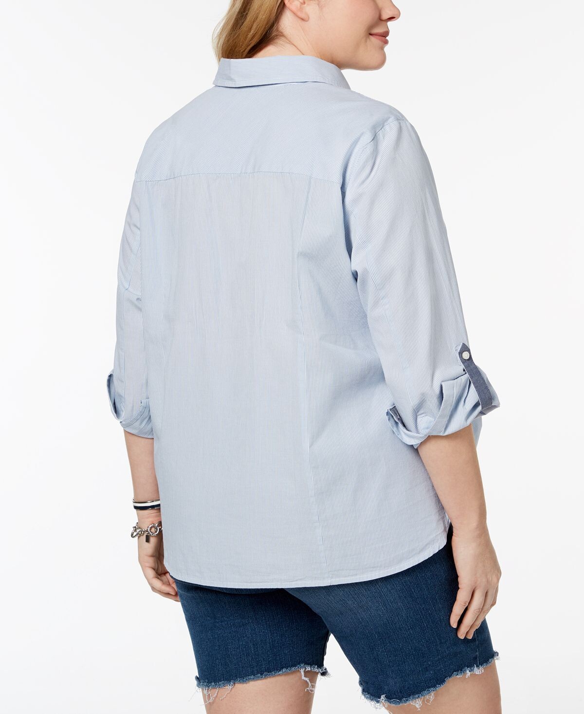 Все застегнуты. Хлопковая рубашка больших размеров от Tommy Hilfiger с игривыми рукавами с закругленными краями и удобной посадкой, обеспечивающей дополнительную защиту.