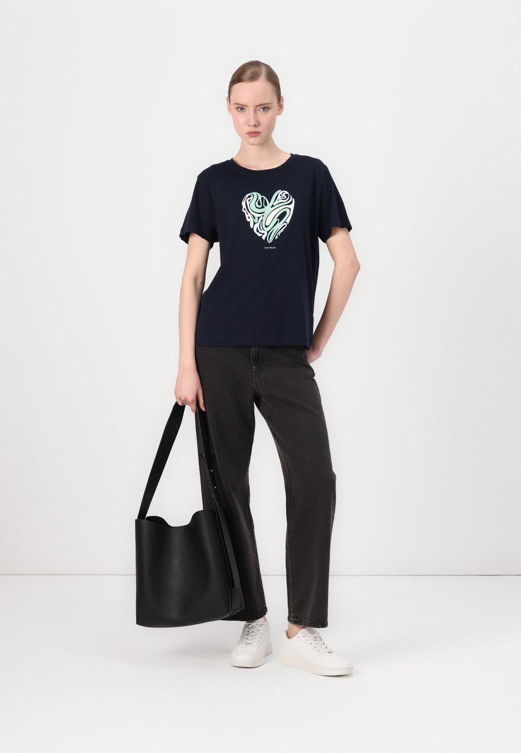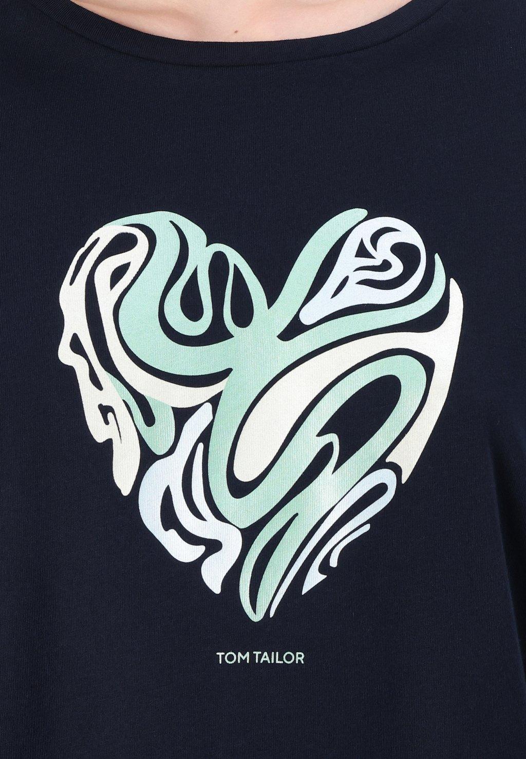 Футболка с принтом CREW NECK TOM TAILOR, темно-синий 3 121₽