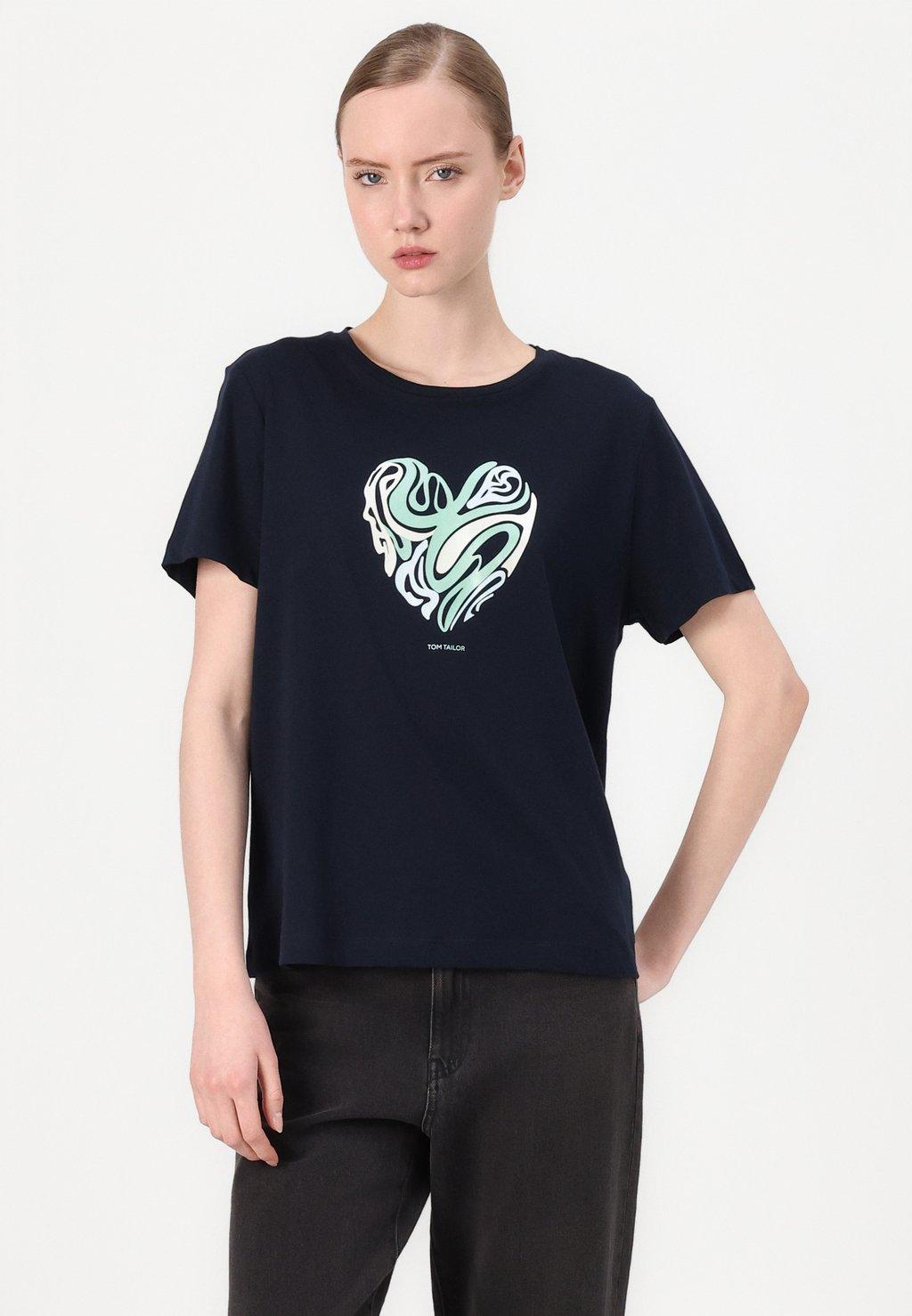 Футболка с принтом CREW NECK TOM TAILOR, темно-синий