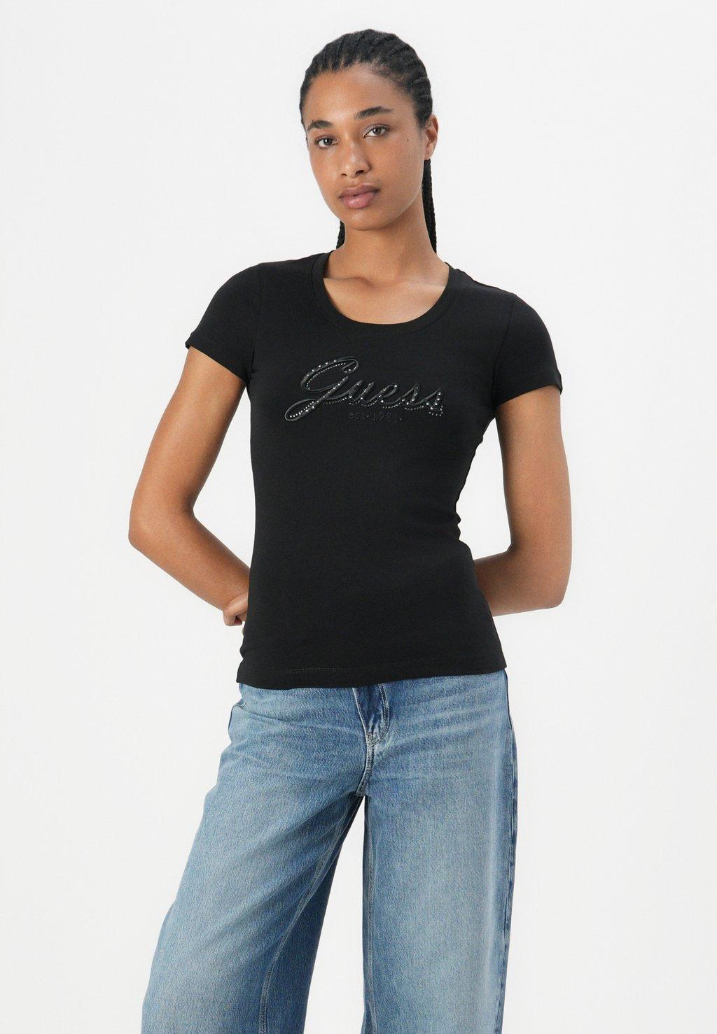 Футболка с принтом EMBROIDERY SCRIPT LOGO Guess, черный