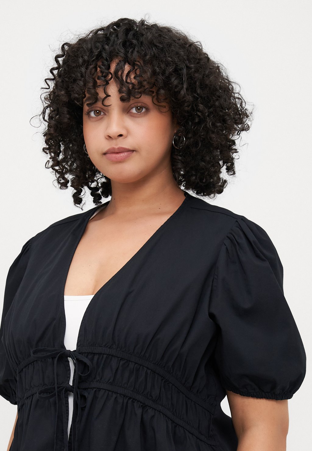 Блуза VMCJARLOTTE TIE V NECK Vero Moda Curve, черный