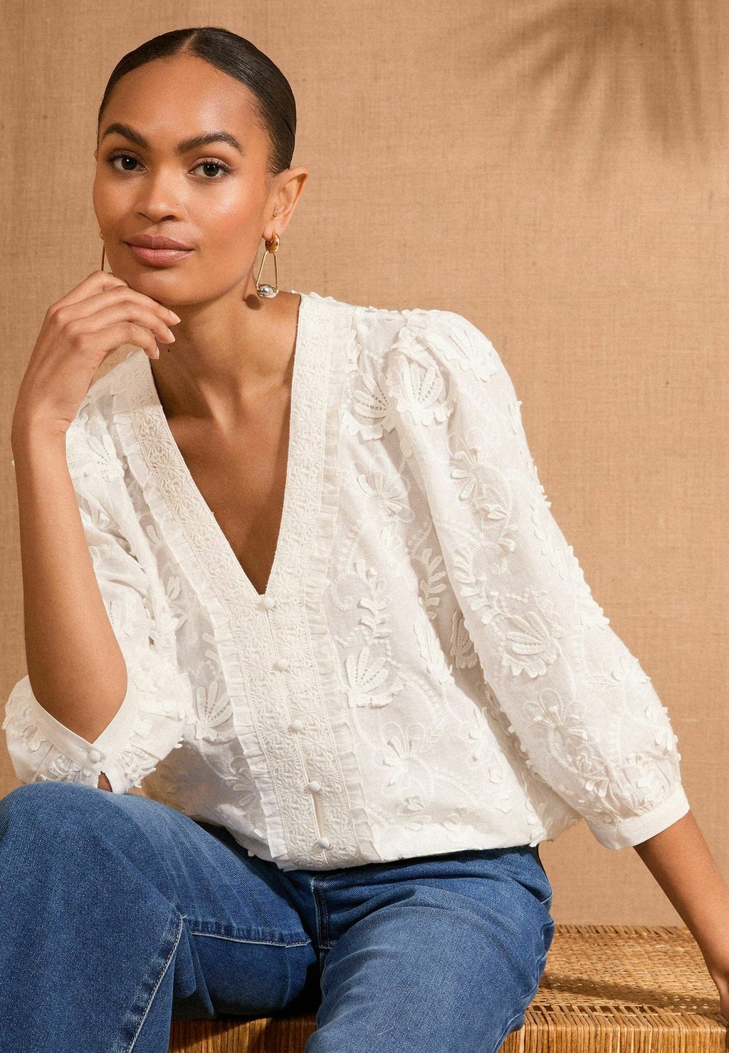 Блуза 3D 3/4 SLEEVE V-NECKLINE Love & Roses, белый