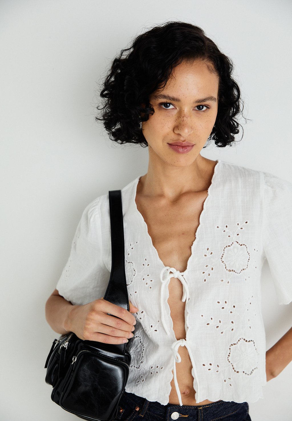 Блуза SCALLOP EDGE Gina Tricot, белый