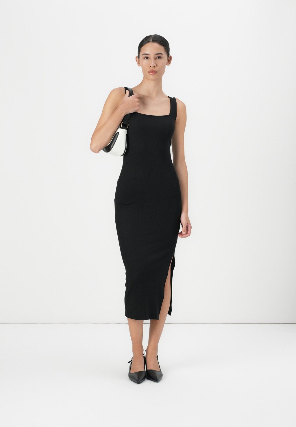 Платье из джерси FITTED SQAURE NECK MIDI DRESS Even&Odd, черный