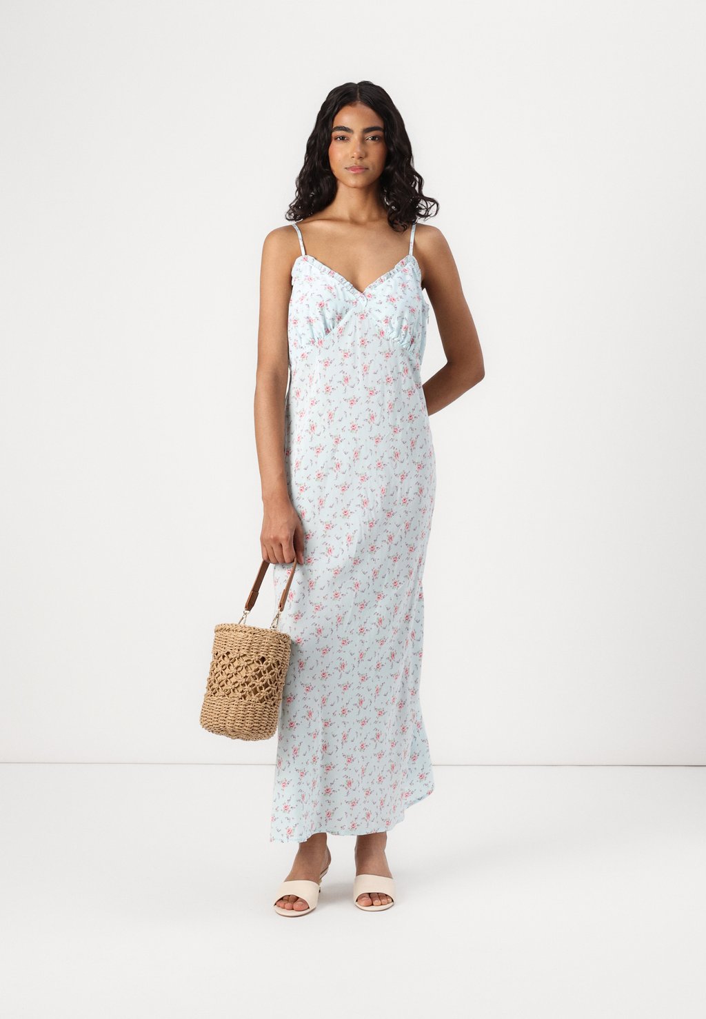Платье макси RUFFLE TRIM SLIP MAXI DRESS GAP, зеленый