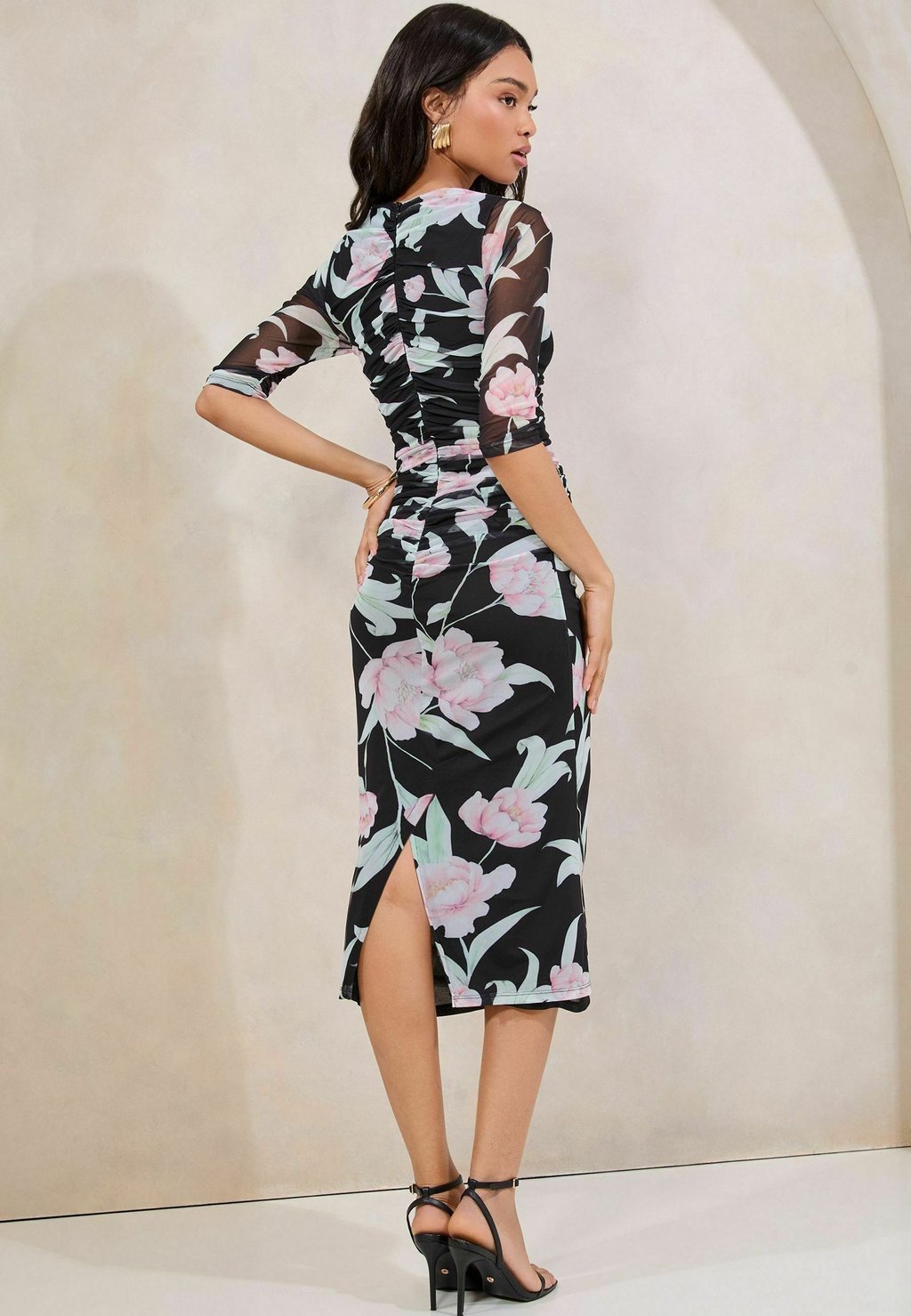 Повседневное платье RUCHED DETIAL MIDI Lipsy, черный