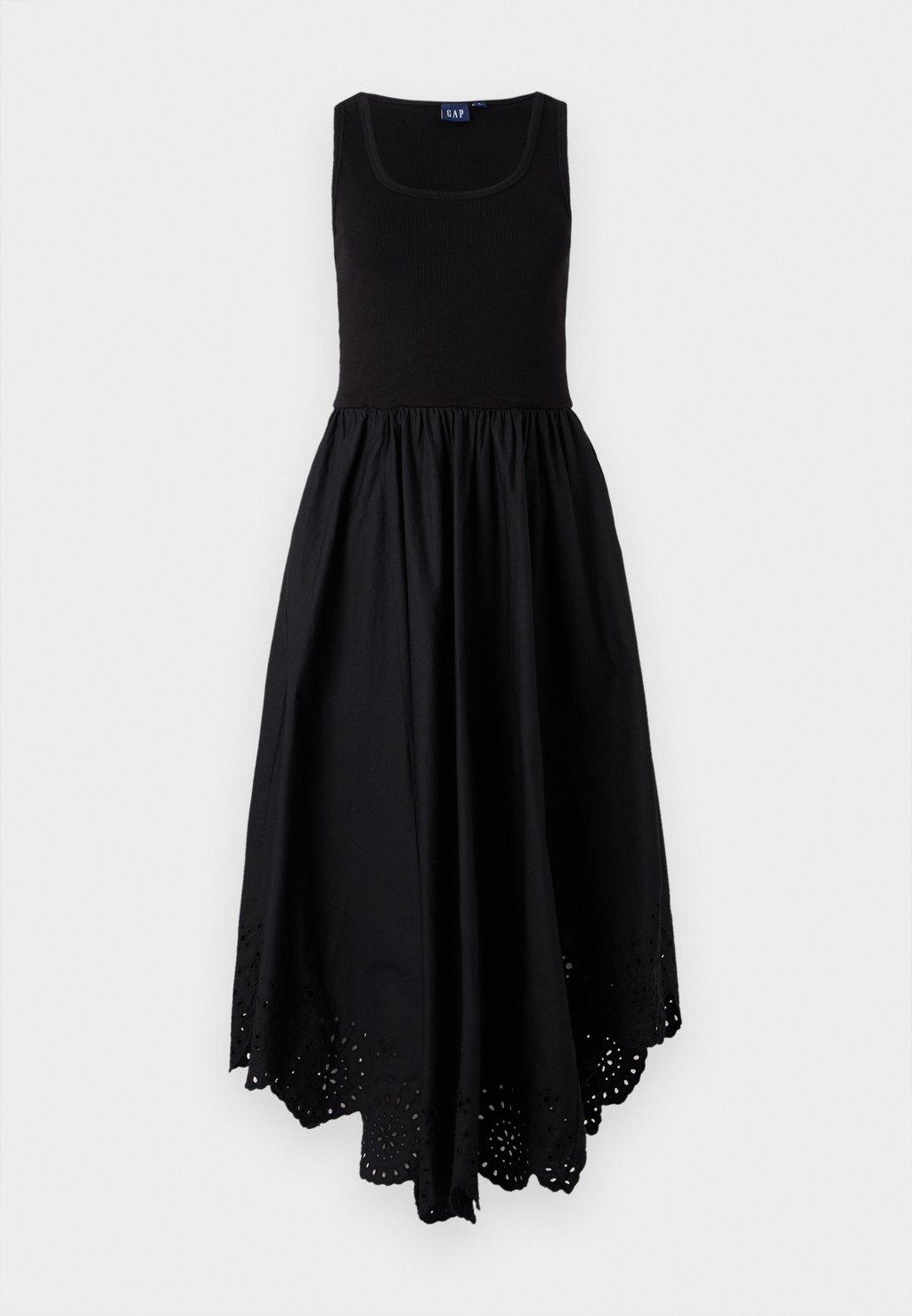 Платье макси HANKERCHIEF HEM MIXED MEDIA GAP, черный