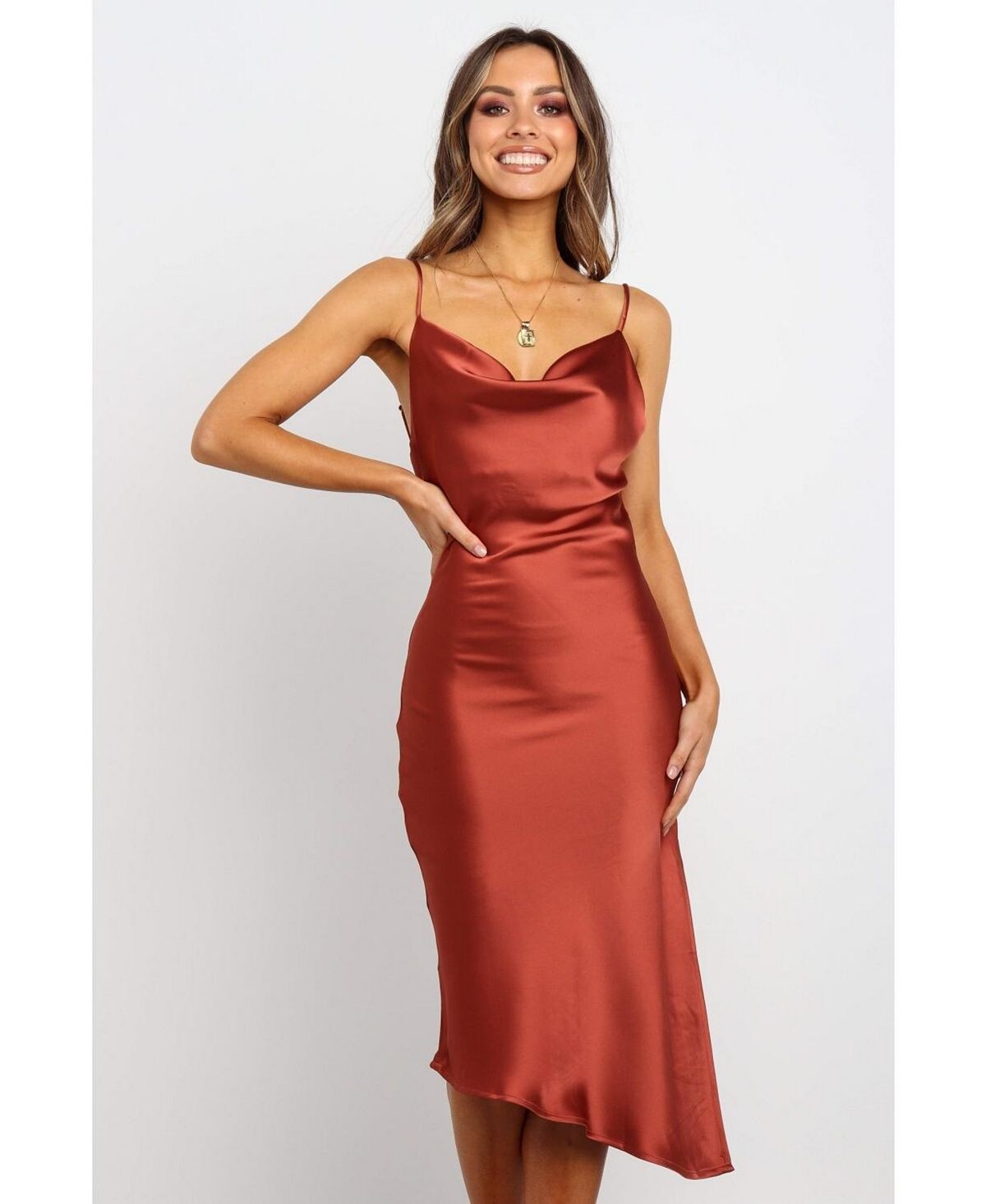 Платье «Кипр» — потрясающее платье миди с воротником-хомутом и регулируемыми бретелями. Асимметричный подол и атласный блеск придают этому платью романтичный вид. Ищете ли вы наряд для особого мероприятия или просто что-то, что придаст вам дополнительный гламурный вид, платье Кипра идеально подойдет вам.