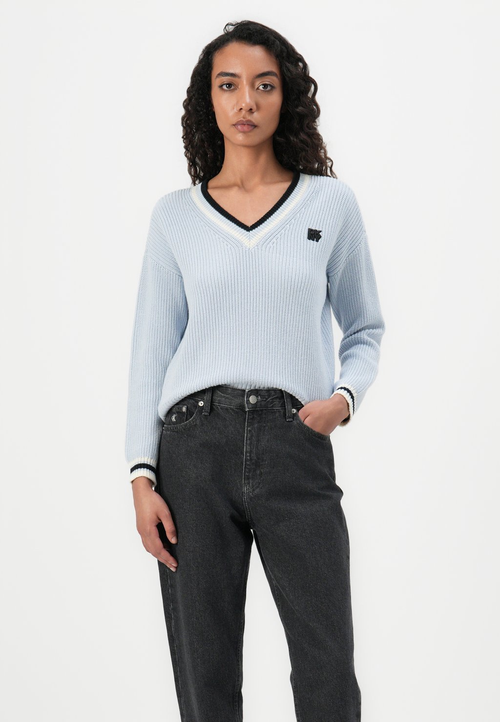 Джемпер SHAKER STITCH V NECK PULLOVER DKNY, светло-голубой