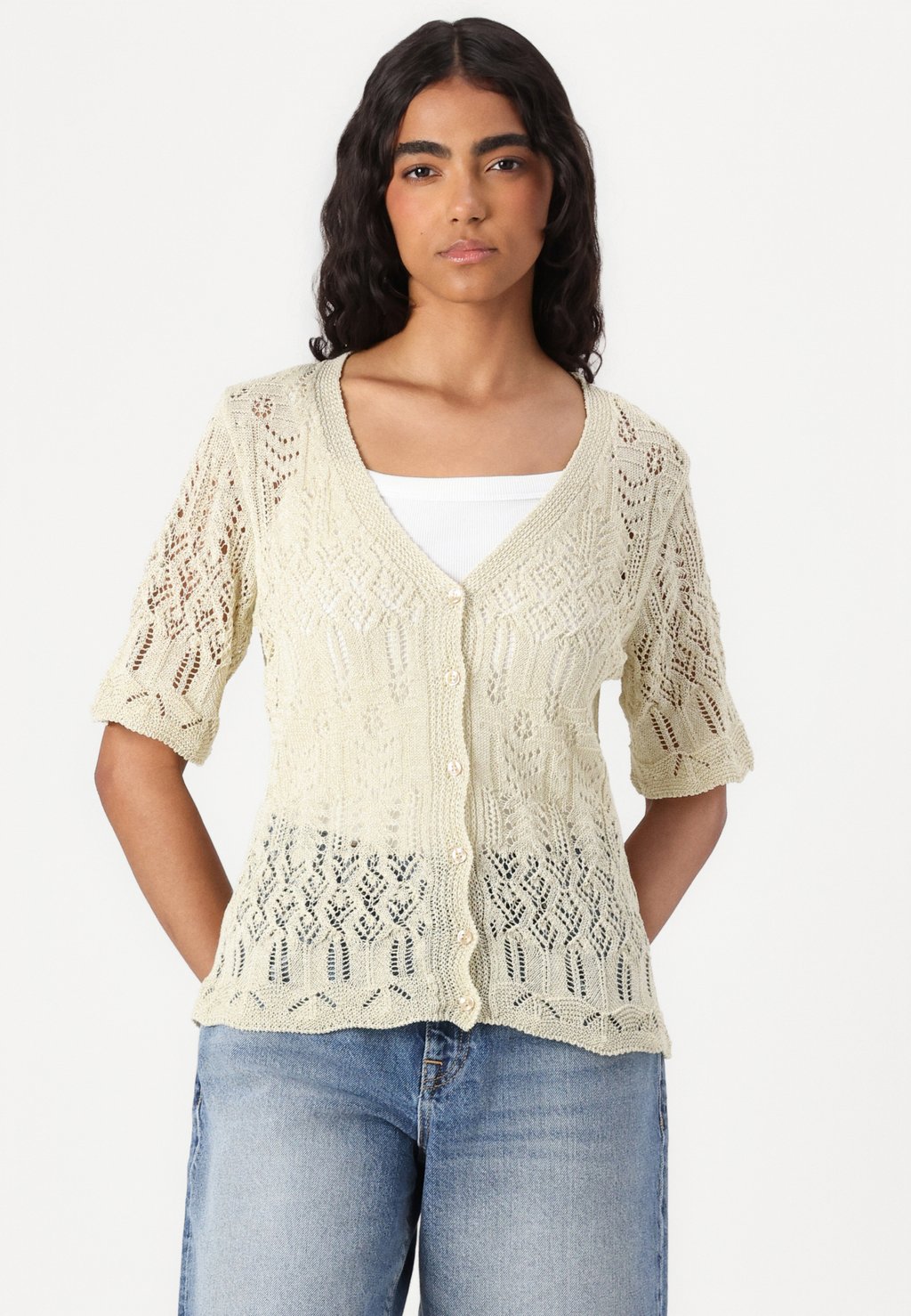 Кардиган ONLLOVELY GLITTER BUTTON ONLY, кремовый