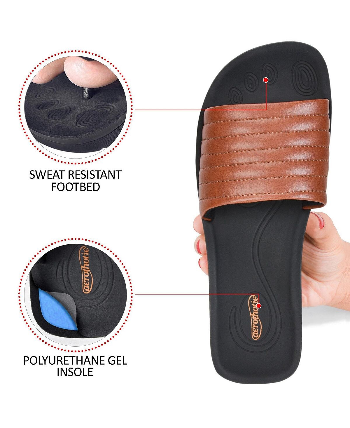 Наденьте шлепанцы Maeve и испытайте максимальный комфорт благодаря оригинальной ортопедической стельке Aerothotic. Изящные и шикарные, эти универсальные сандалии — идеальный выбор для выполнения поручений или планирования выходных в последнюю минуту.