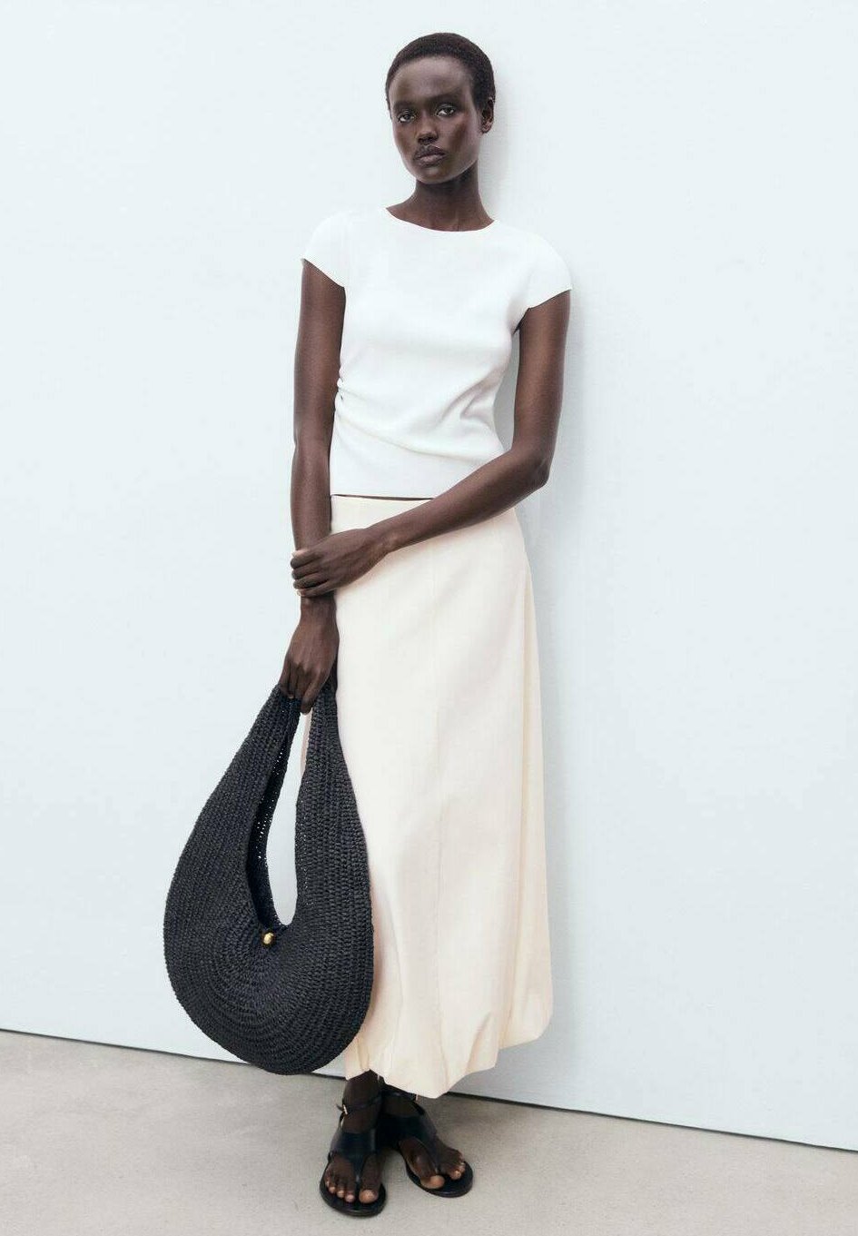 Юбка-фонарик LONG BALLOON - Maxi skirt Mango, кремовый