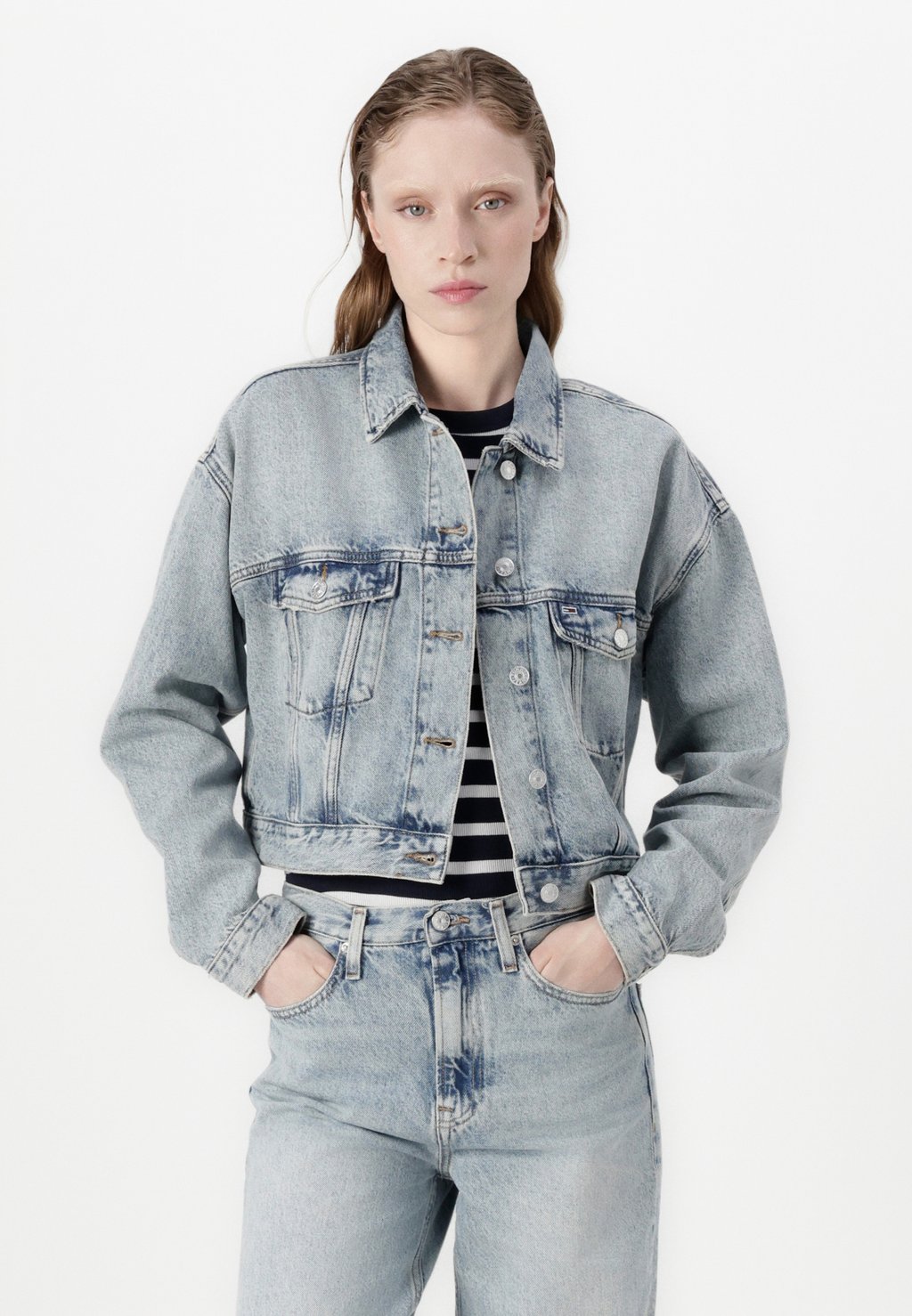 Джинсовая куртка CROP TRUCKER JACKET Tommy Jeans, цвет Denim Light 8 085₽