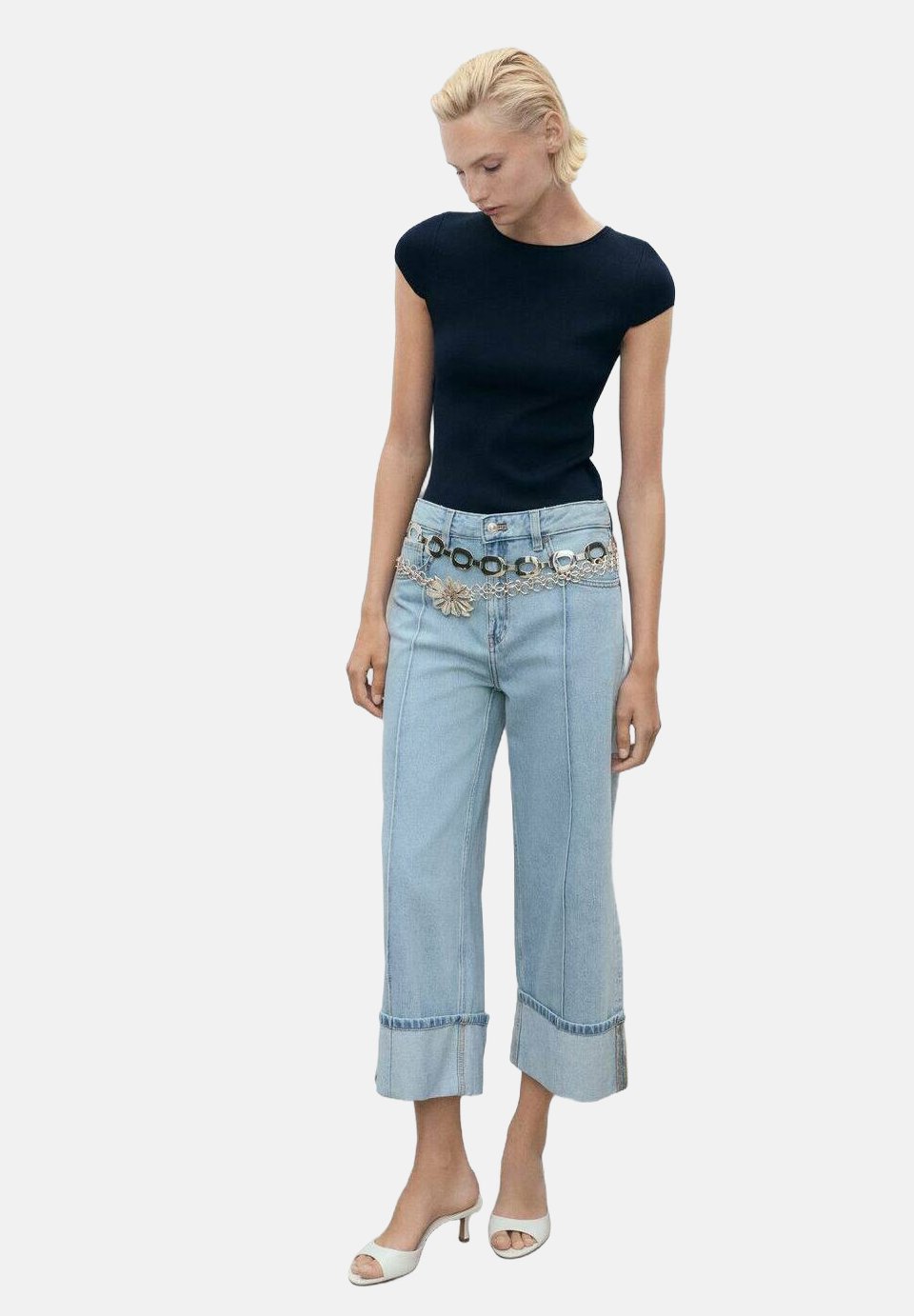 Джинсы свободного кроя WIDE-LEG WITH TURNED-UP HEM Mango, синий 5 102₽