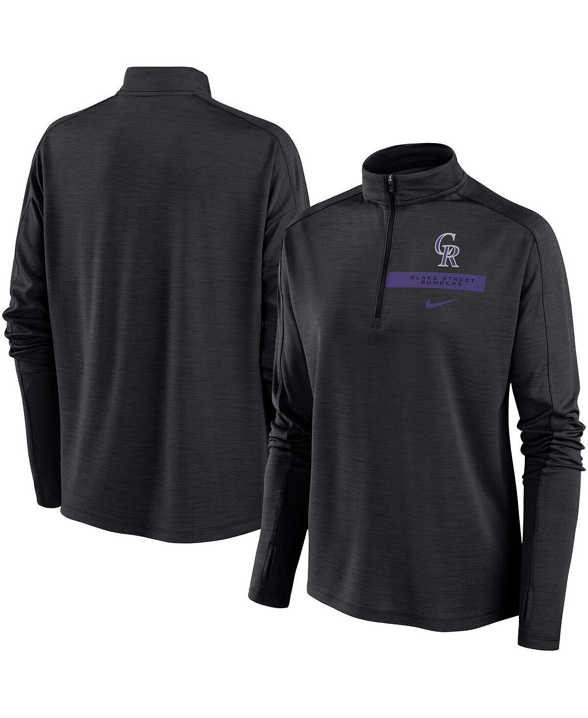 Черный женский топ Colorado Rockies Primetime с молнией четверть реглан Nike, черный 9 071₽